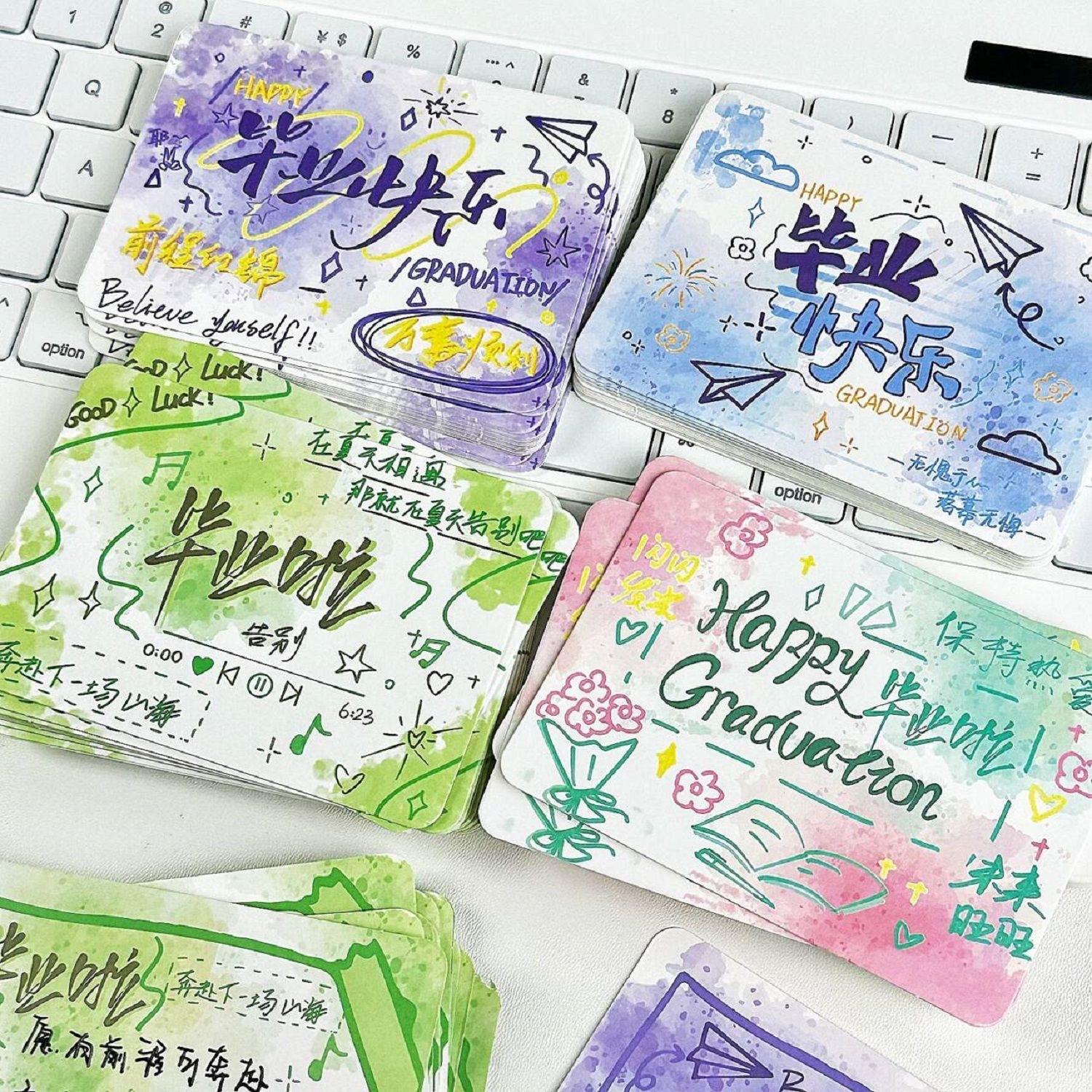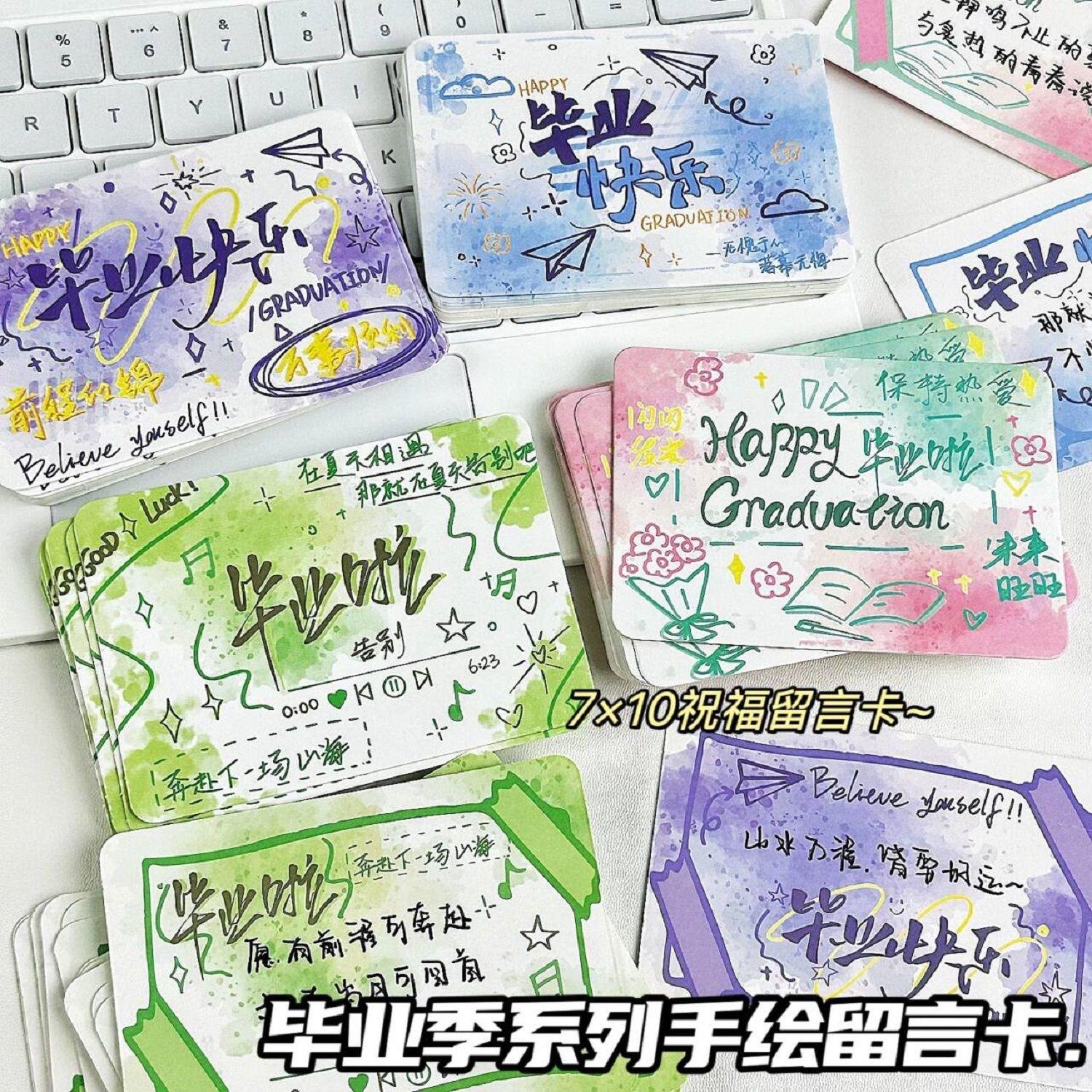 Serie Temporada de Graduación Tarjetas de Mensaje Pintadas a Mano Estilo ins Tarjetas Duras de Alto Valor Mezcla y Combina Postales Regalos de Graduación para Estudiantes
