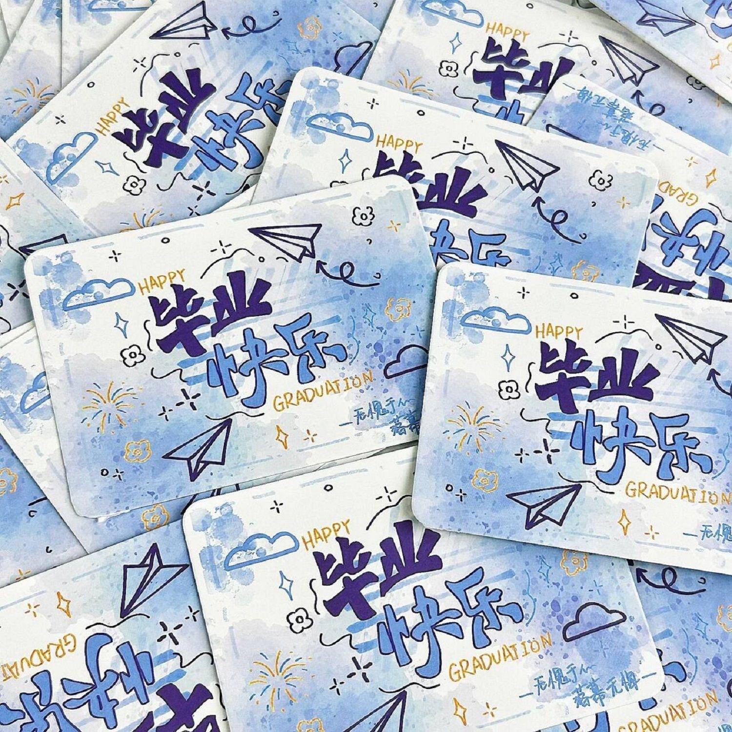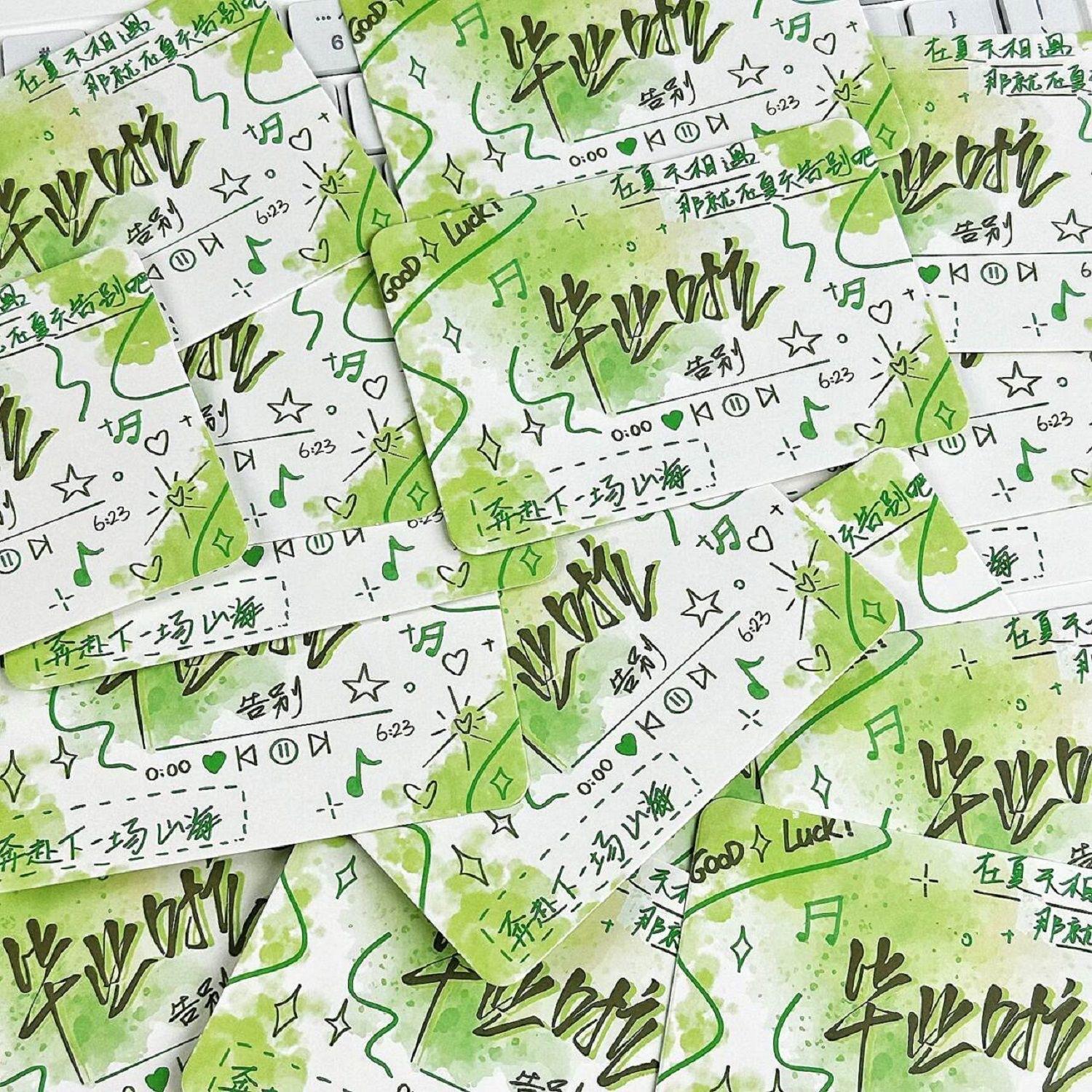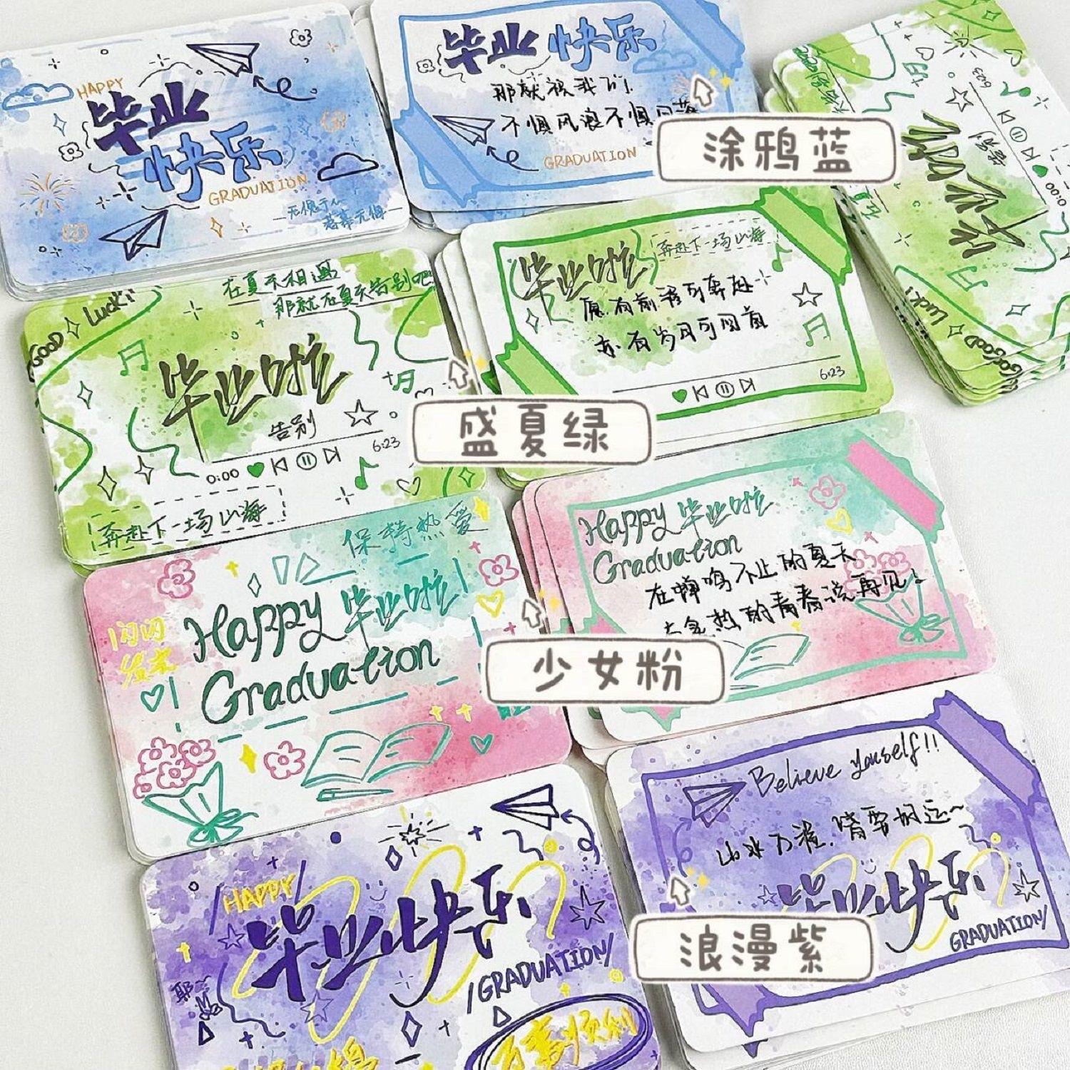 Graffiti blue graduation message cards 1 pack of 20 pieces [7*10cm], Midsummer green graduation season message...