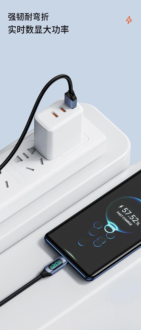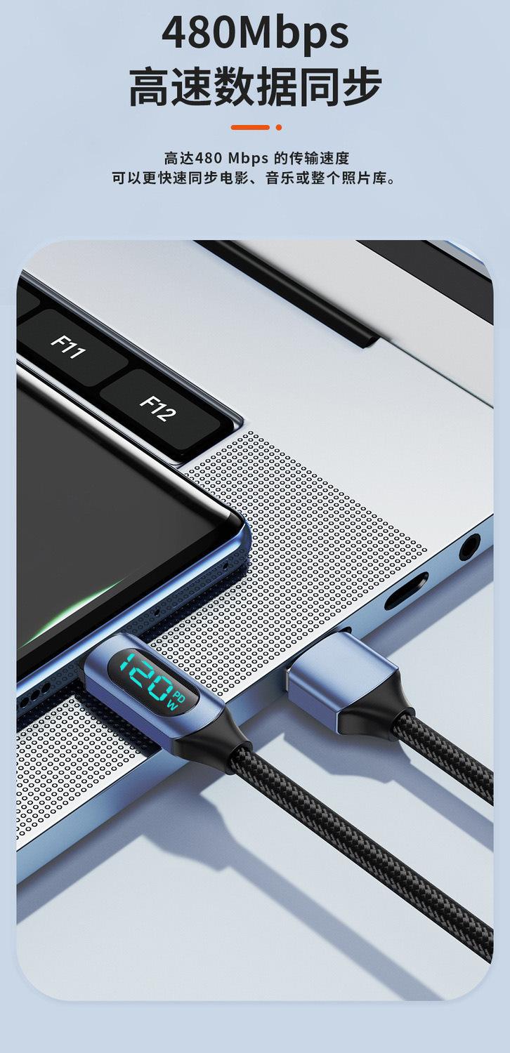 Digital display power [ 1m / black ] 120w super fast charge, Digital display power [1m / blue] 120w super fast...