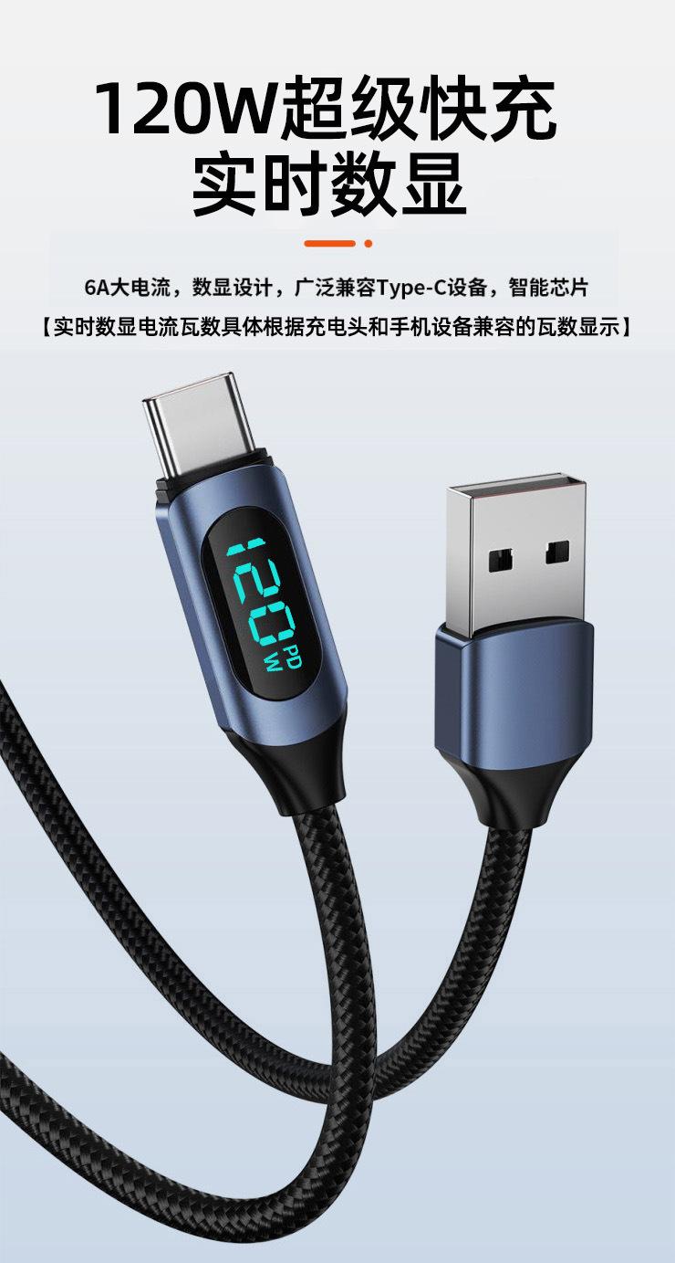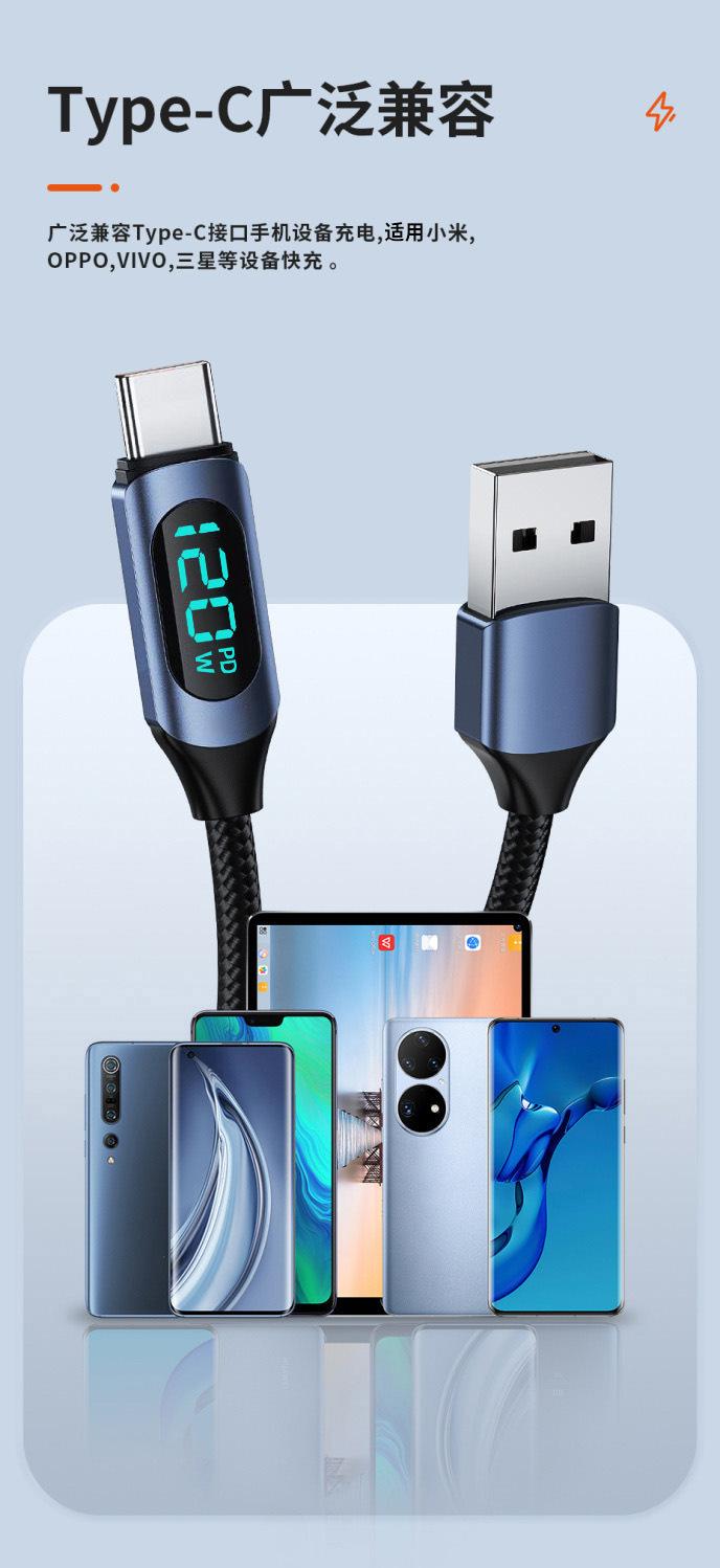 Compra Pantalla Digital Inteligente 120W Carga Súper Rápida Cable de Datos Tipo C Adecuado para Apple 16 Huawei Cable de Carga para Teléfono Móvil para Coche al por mayor en Joom.pro