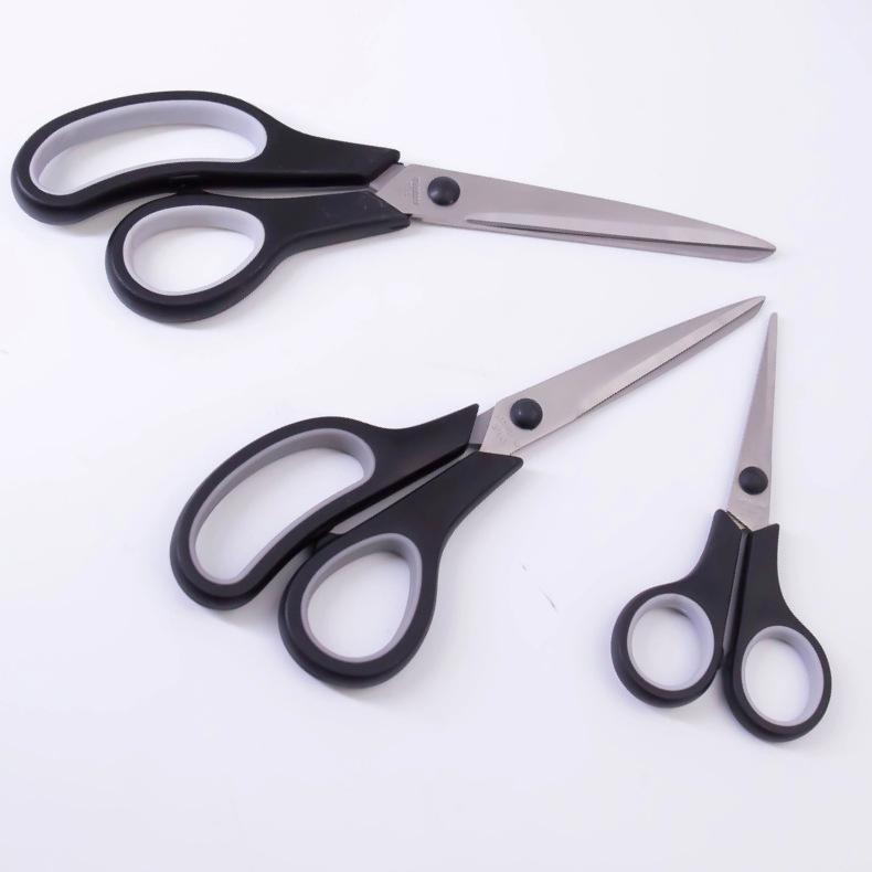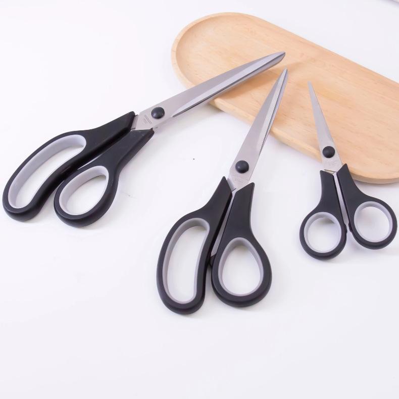 Venta al por mayor de fábrica acero inoxidable hogar oficina tijeras tijeras de sastre tijeras de papelería para estudiantes tijeras de goma bicolor