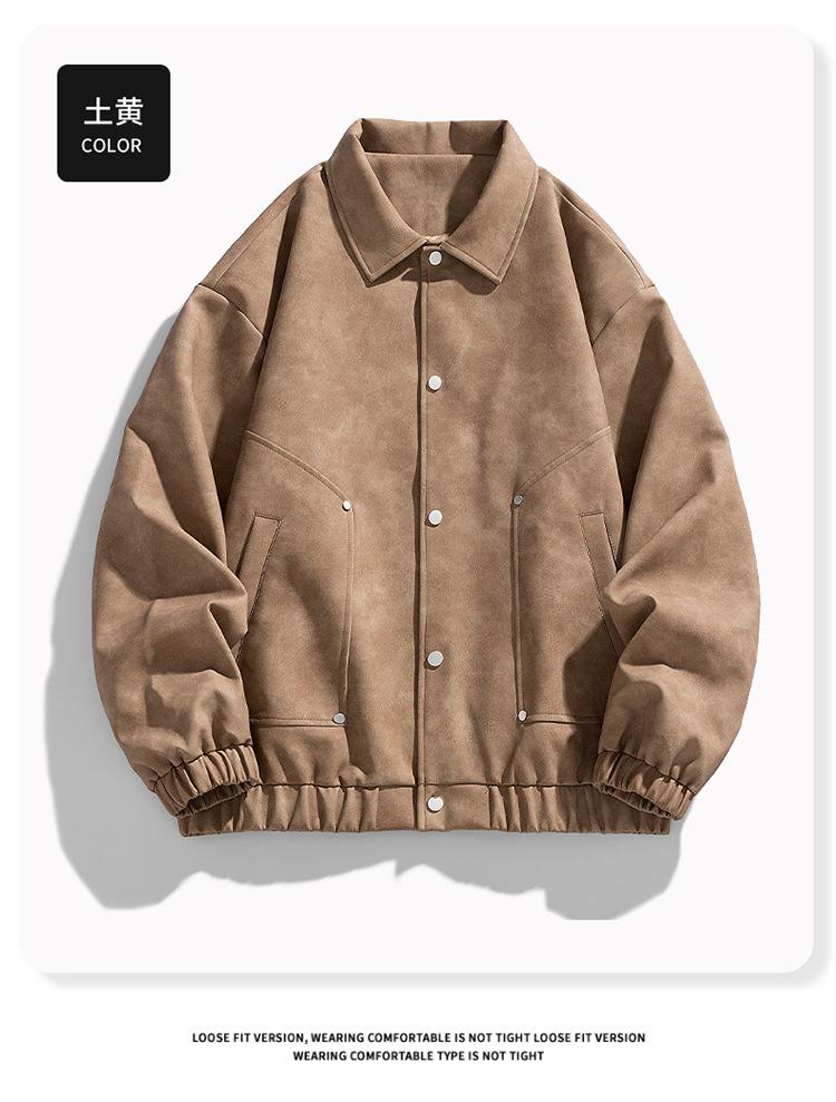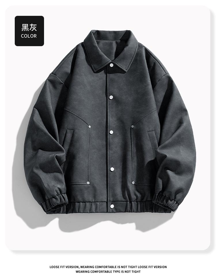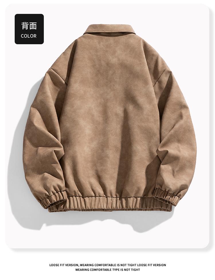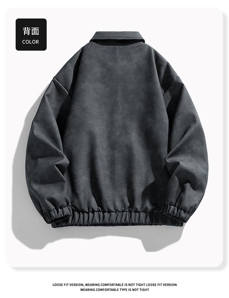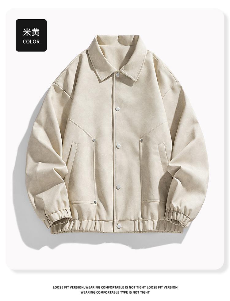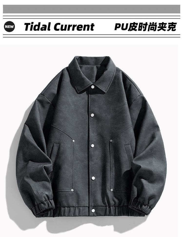 Otoño e Invierno Nuevo Chaqueta de Cuero PU para Hombre Solapa Chaqueta de Motociclista Chaqueta de Cuero Ropa para Jóvenes para Hombre Estilo K Suelta Sin Lavado