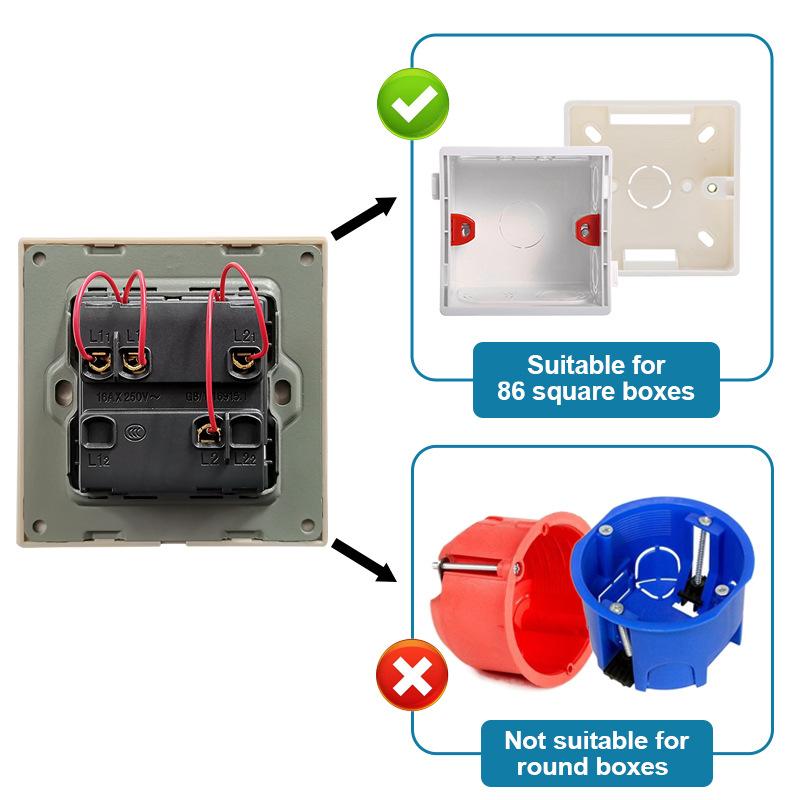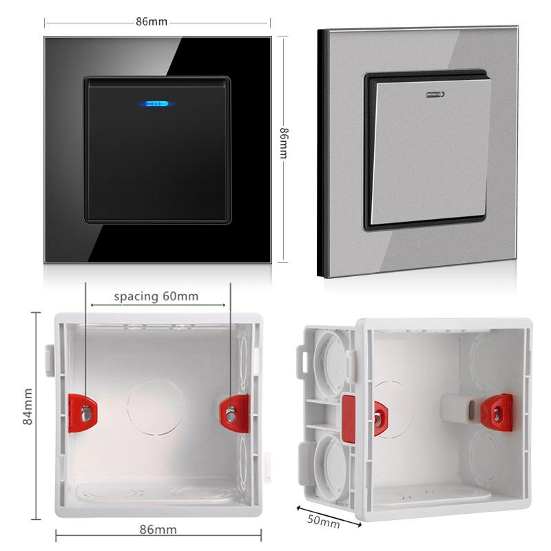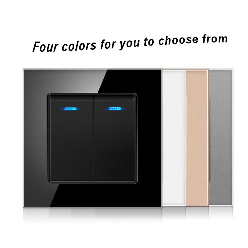 Interruptor de pared tipo 86 panel de vidrio templado empotrado oculto interruptor de botón de control simple y doble al por mayor