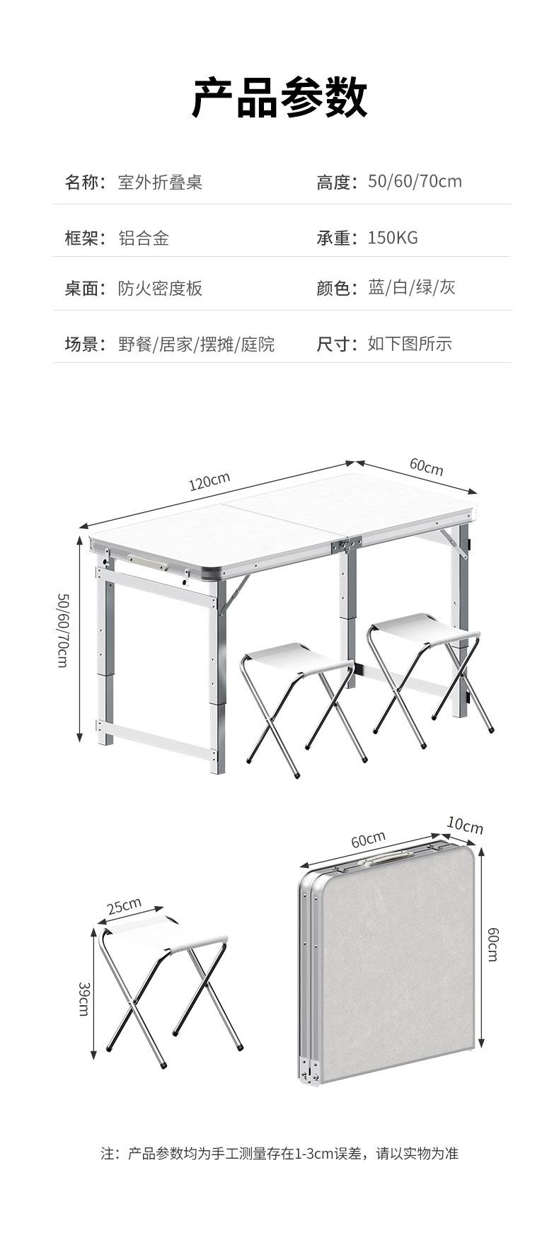Mesa Plegable Puesto Plegable Exterior Portátil Elevable Camping Picnic Mercado Nocturno Mesa Plegable y Silla