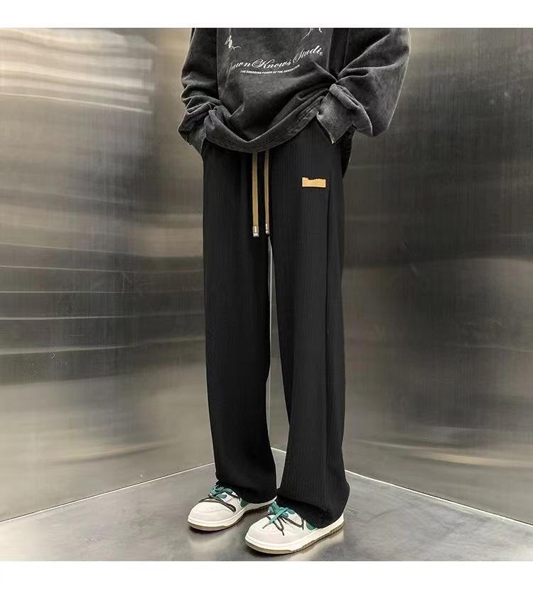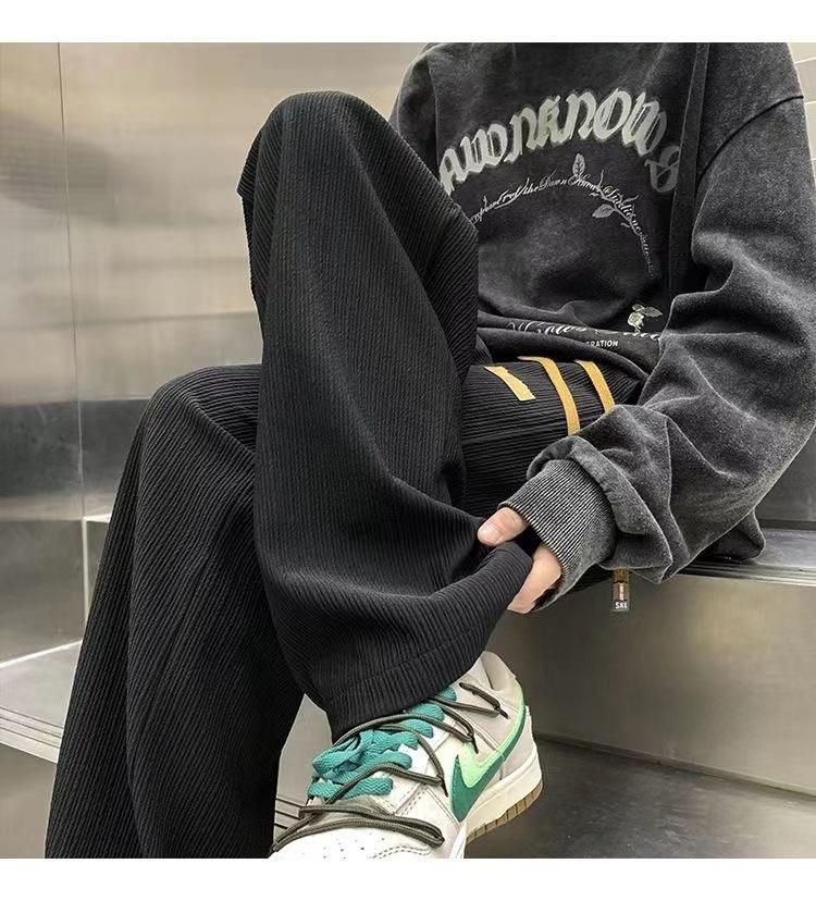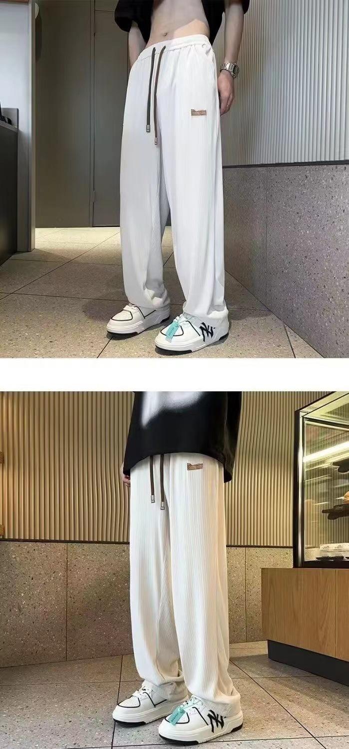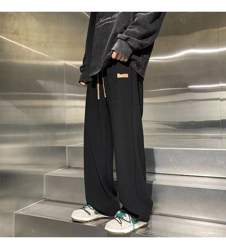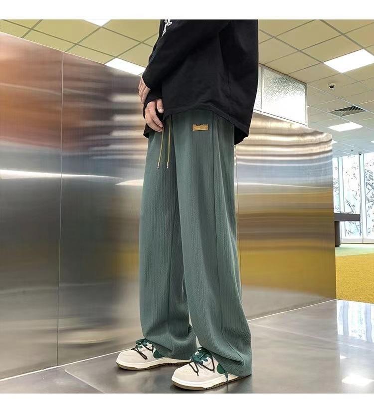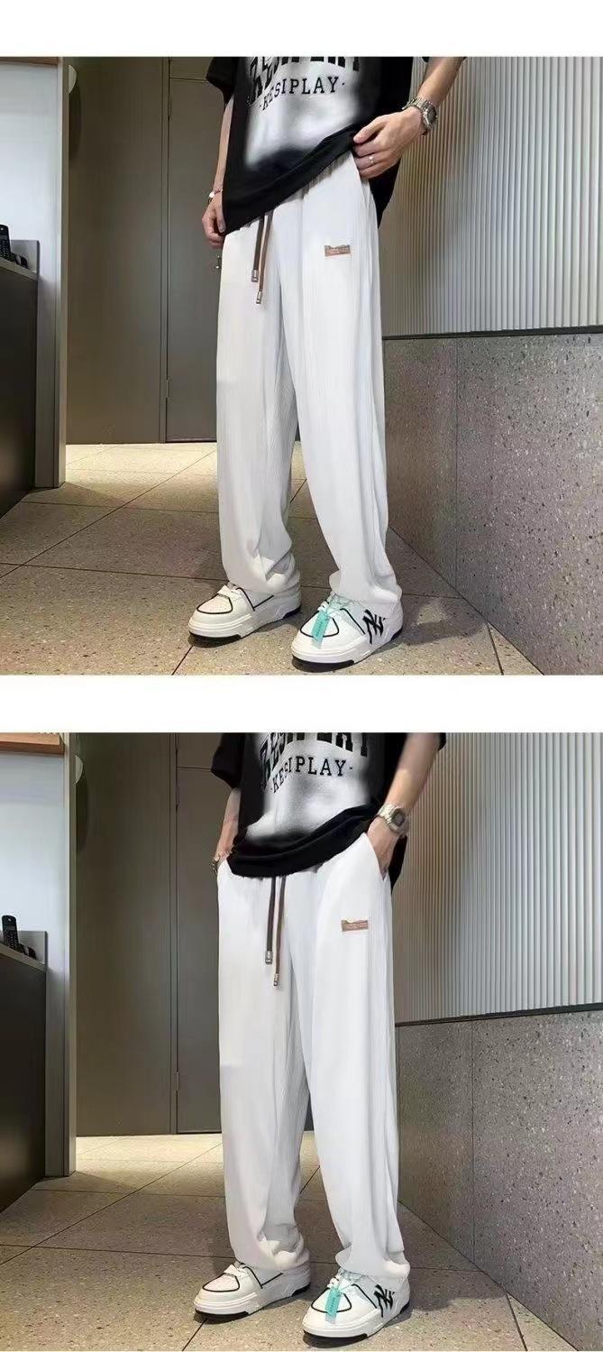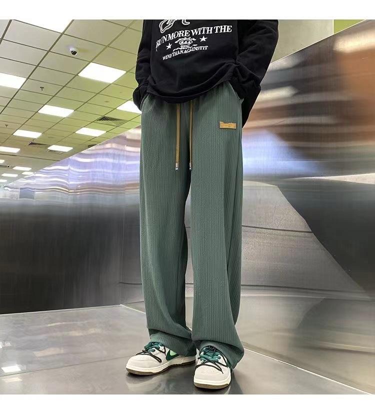 Pantalones de Pierna Ancha Pantalones Deportivos Seda de Hielo Moda Versátil Trendy High Street Estilo Americano Pantalones Nuevo Otoño Sueltos Caída Pierna Recta