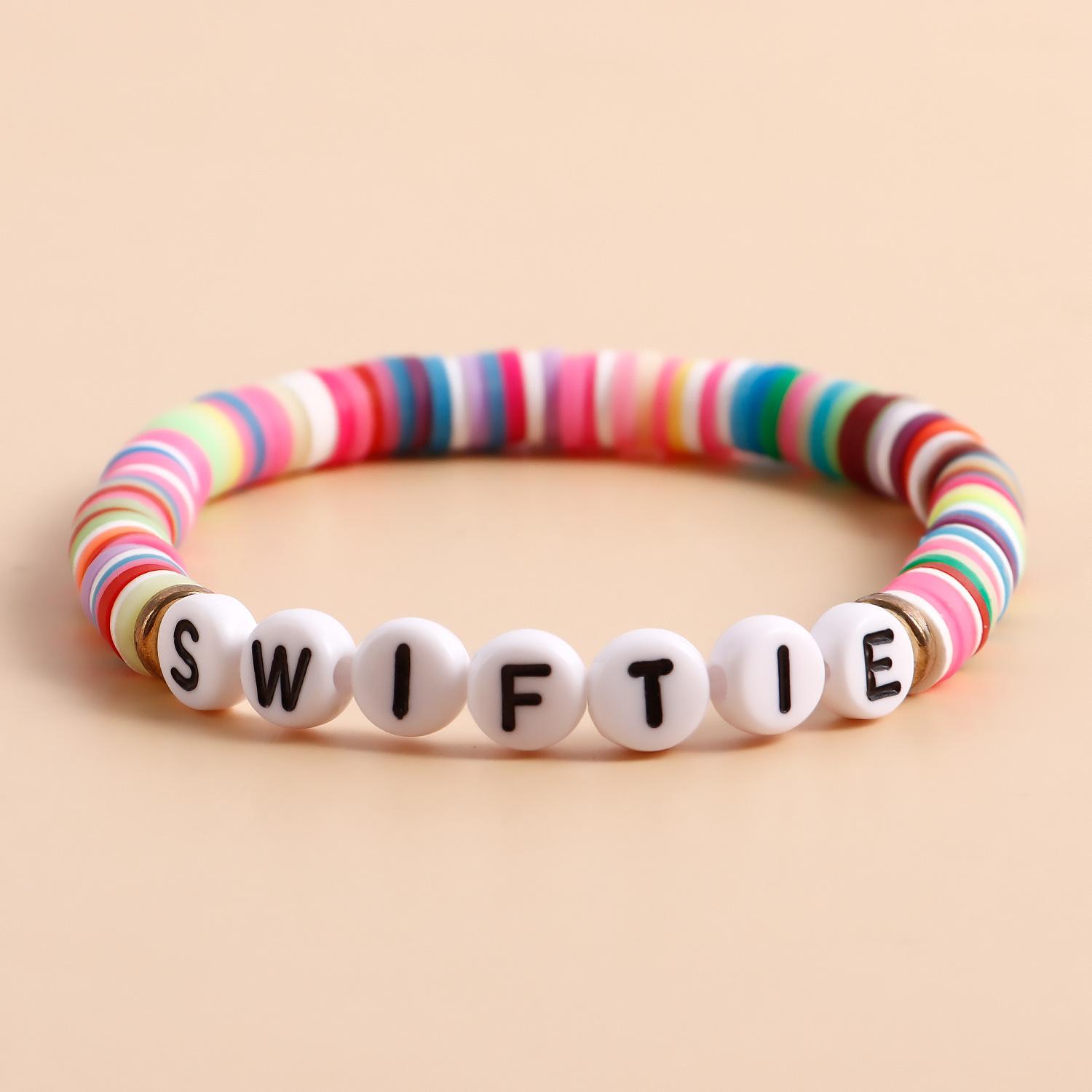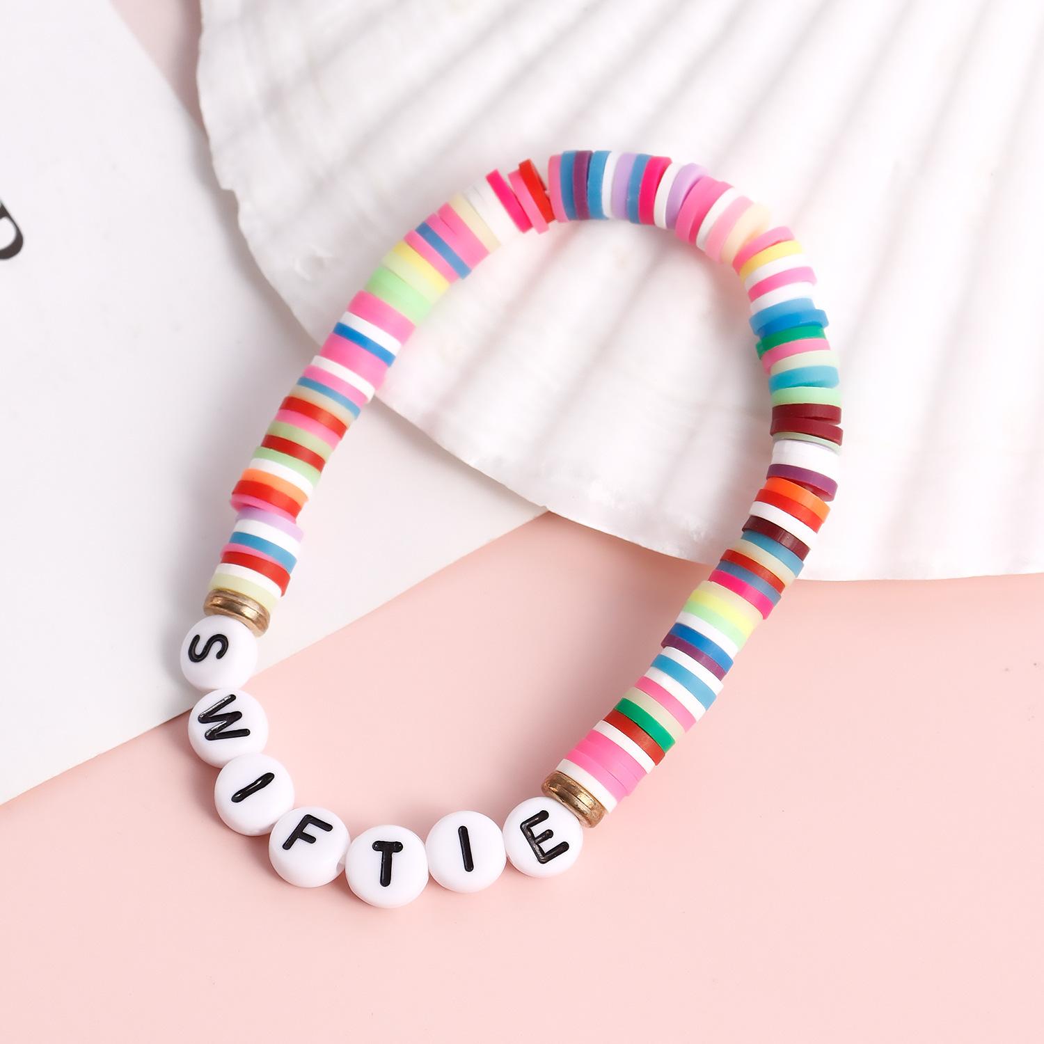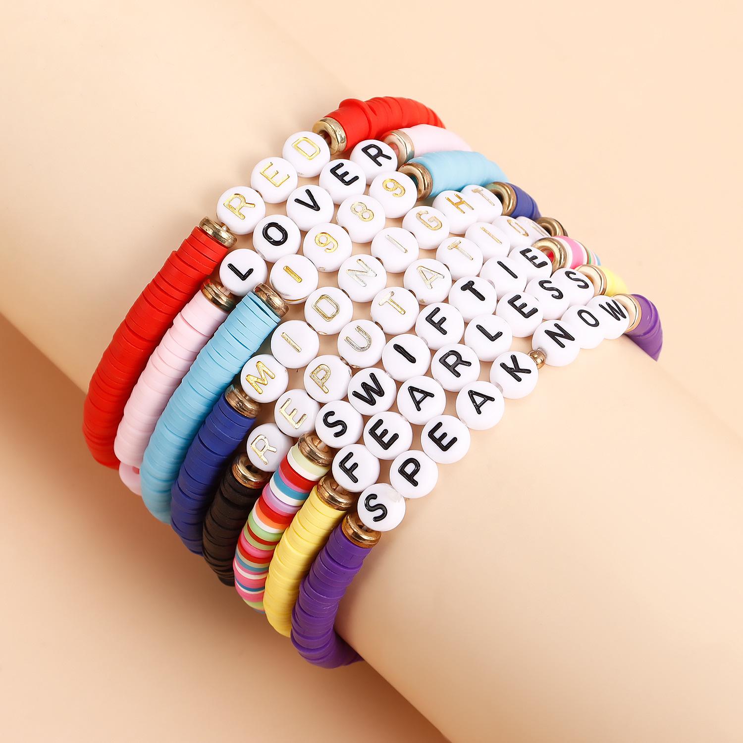 Pulsera de Arcilla Polimérica Suave de Color Simple con Letra Inglesa para Fans de Taylor de Moda de Amazon de Venta Caliente Transfronteriza