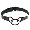 【Nombre del producto】Gargantilla de cuero con 3 aros de metal