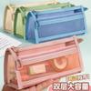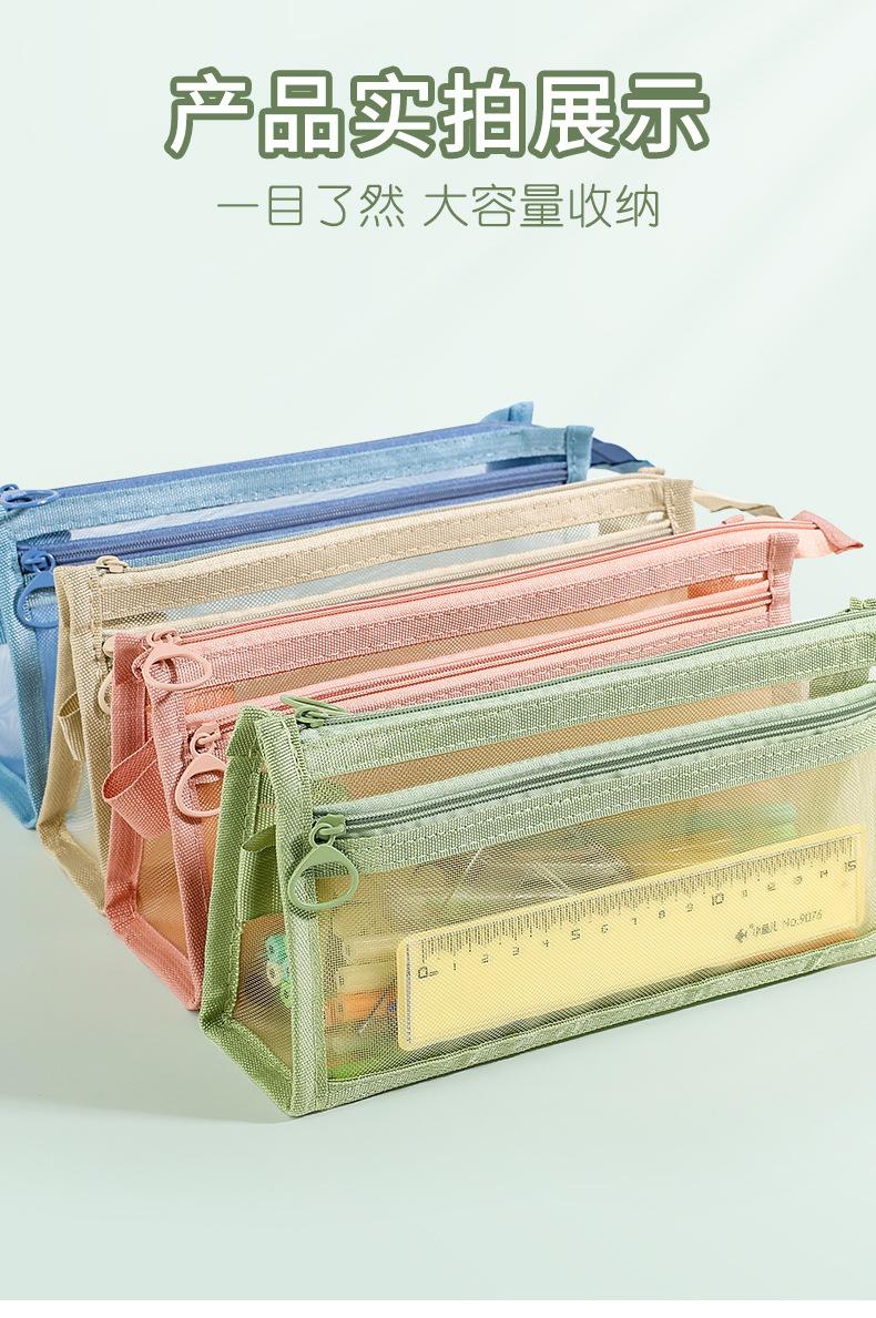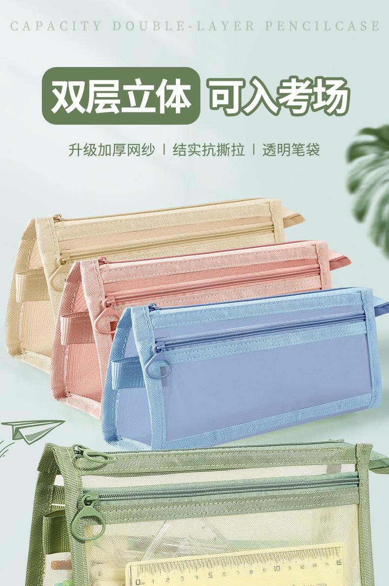 Bolsa de Lápices de Malla Malla Transparente Bolsa de Papelería para Exámenes de Estudiantes Bolsa de Lápices para Niños Caja de Papelería Tridimensional de Doble Capa de Gran Capacidad