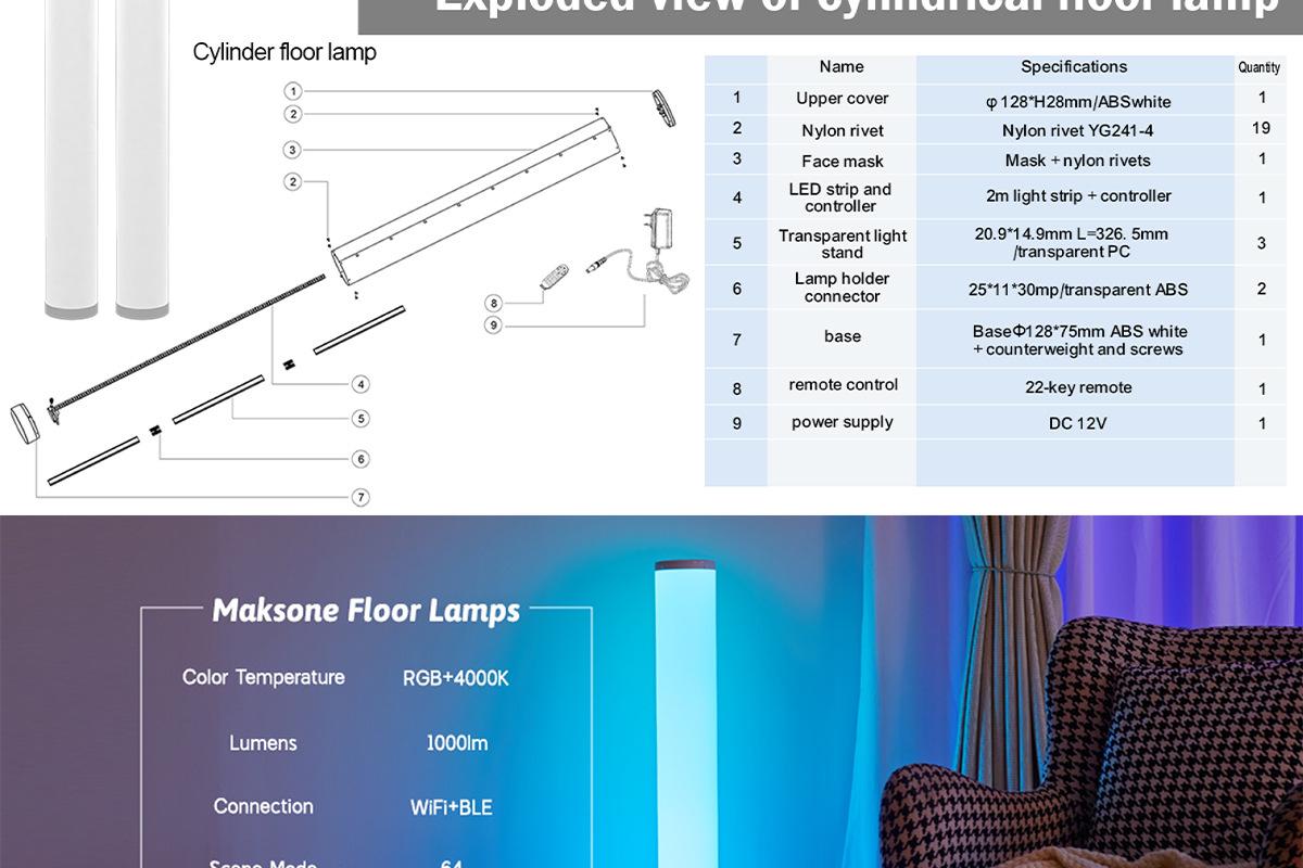 Bluetooth APP Magic Color Cylinder Floor Lamp (One Pack) Appearance Patent, Bluetooth APP Magic Color Cylinder...