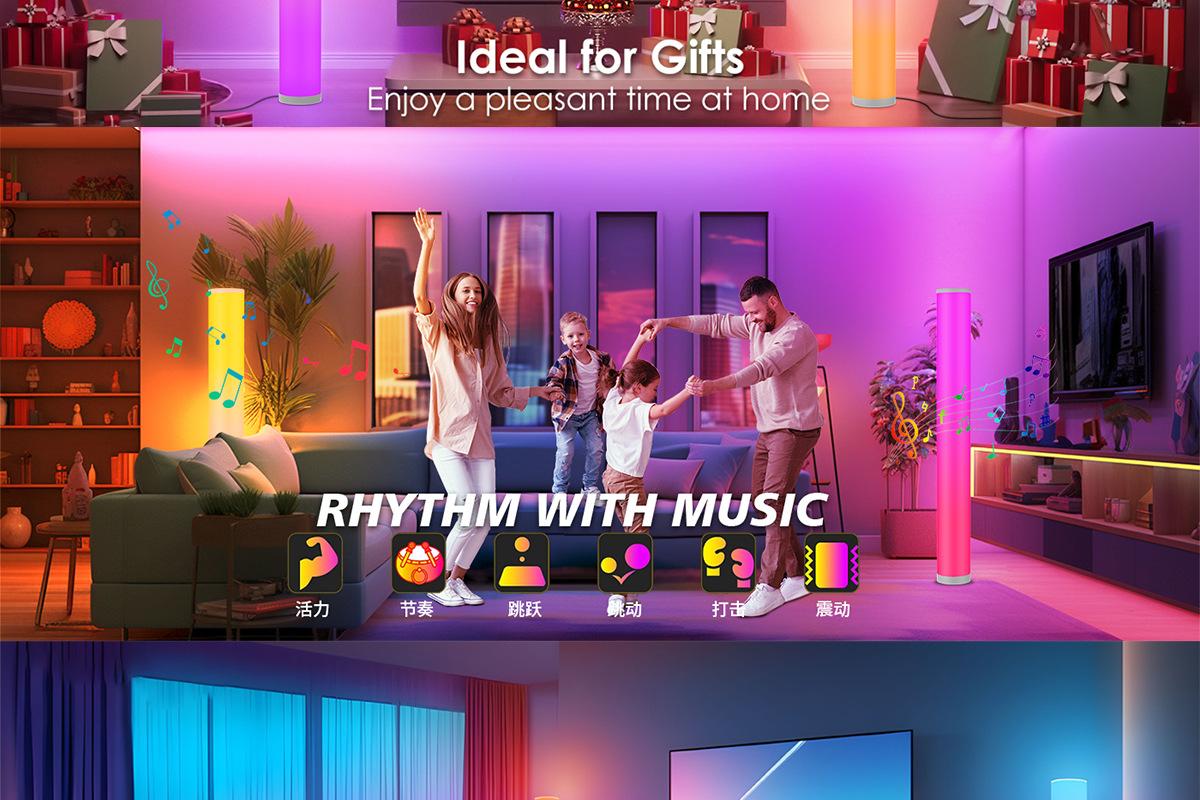 Compra Lámpara de pie Bluetooth control inteligente por APP sala de estar dormitorio luz de ambiente musical rgb cilindro grafiti luz de esquina de pared al por mayor en Joom.pro