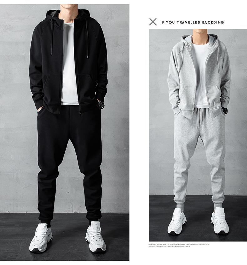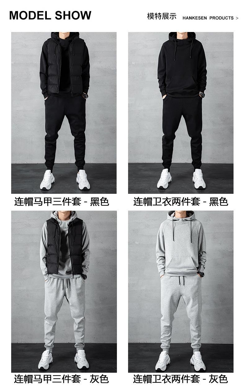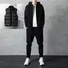 Suéter con capucha para hombre, traje de otoño e invierno, nuevo estilo coreano, talla grande, forro polar, chaleco tipo cárdigan grueso con conjunto de tres piezas