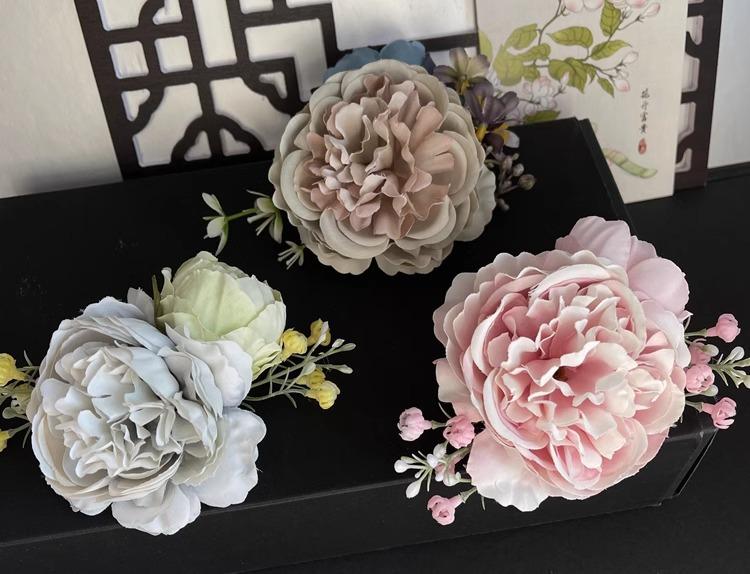 Horquilla Peonía Tocado Accesorios para el Cabello Novia Flor Danza Flor de Seda Antigua Accesorios Hanfu Grupo Construcción Foto de Viaje Actuación