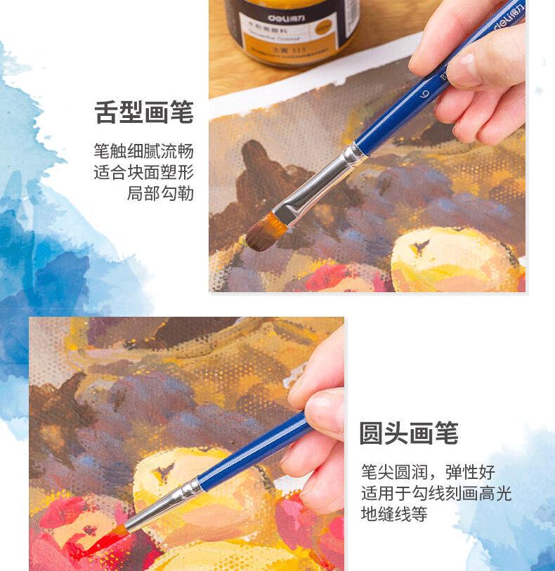 Deli 73866 gouache brushes 4 pack, Deli 73867 watercolor brushes 4 pack, Deli 73885 brush set 6 pieces, Deli d...
