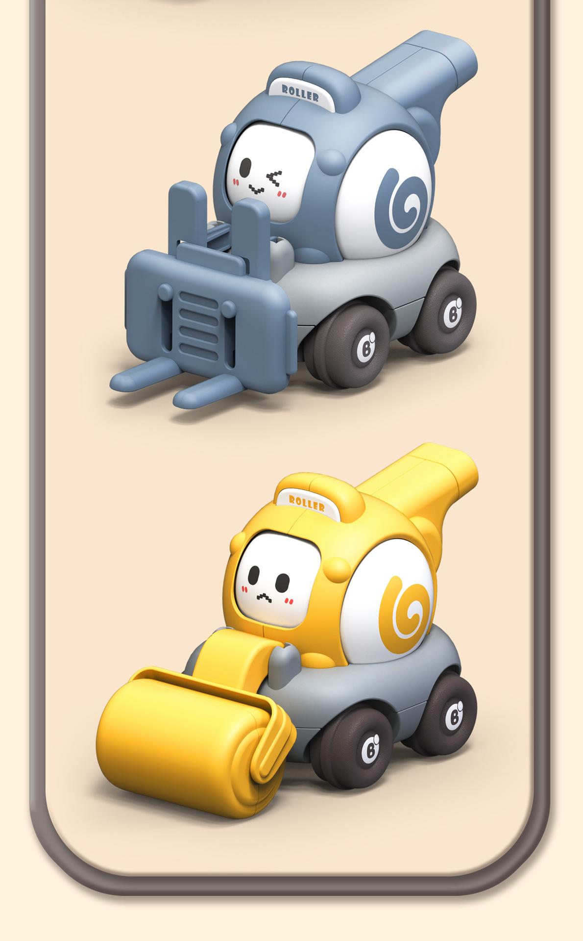 Engineering vehicle (random one, take 4 pieces and send a set), Forklift, Bulldozer, Excavator, Road roller