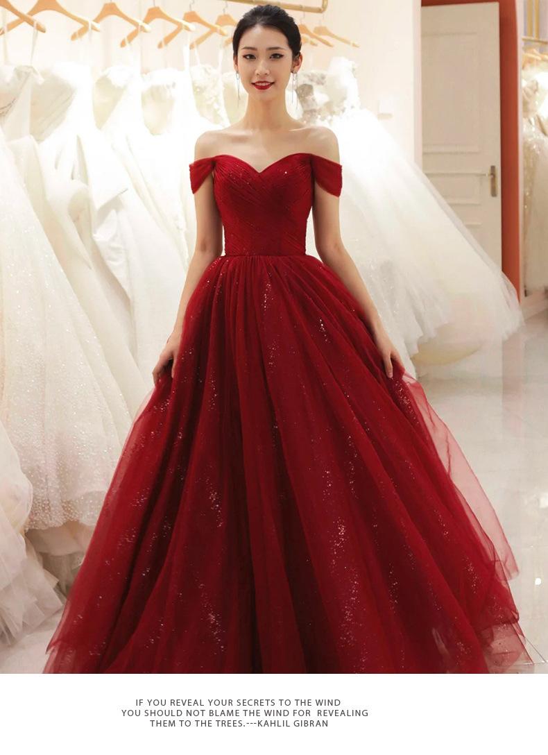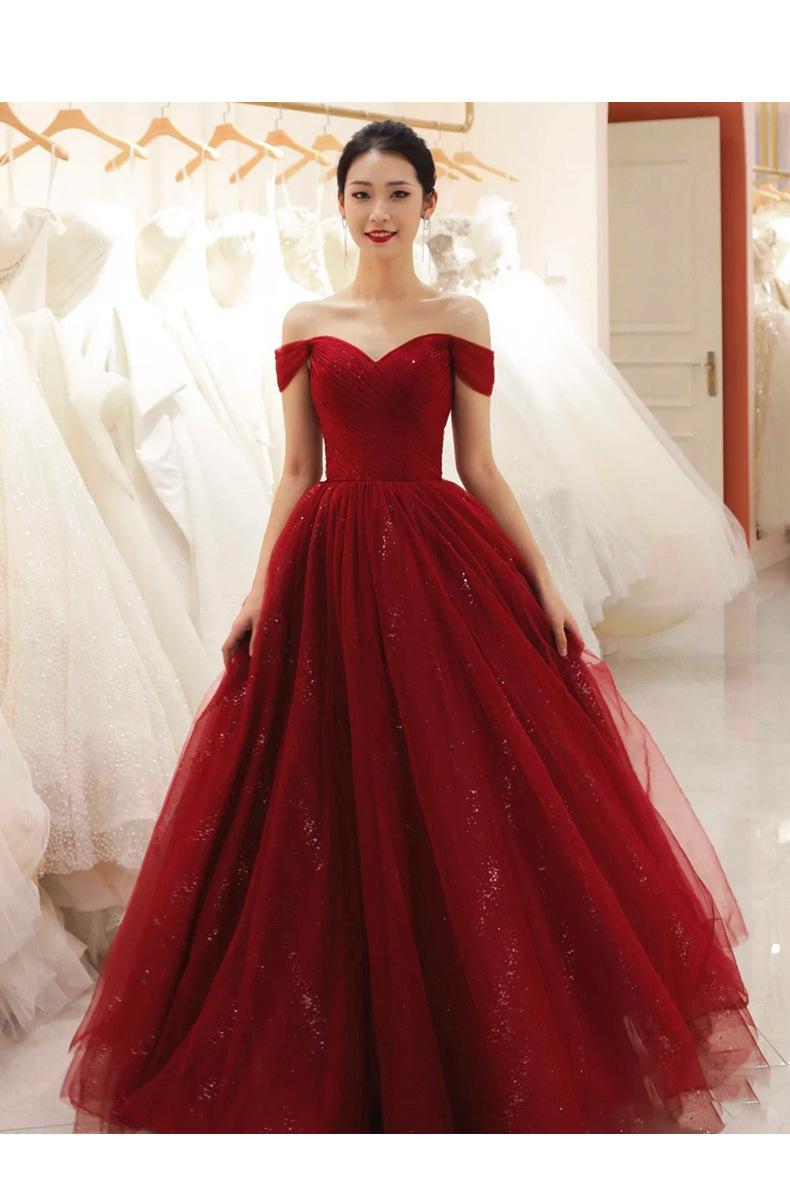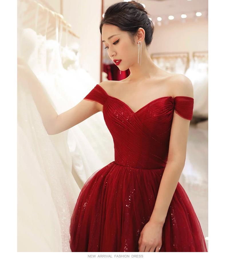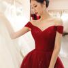 Vestido de Brindis de un Hombro Novia 2025 Nuevo Vestido de Banquete de Agradecimiento de Boda Elegante Rojo Vestido de Compromiso Primavera