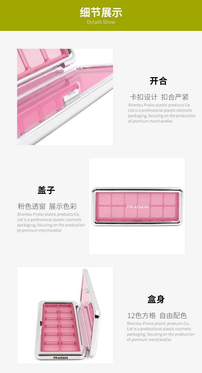 Paleta de sombras de ojos de 12 celdas con ventana transparente rosa, cosméticos, caja vacía para sombras de ojos, cuadrada, de plástico, caja para rubor, material de embalaje