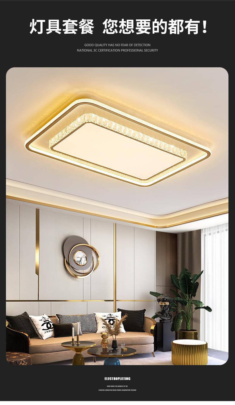 Luz de techo de cristal LED atmosférica de lujo ligero, luz para sala de estar, luz rectangular moderna simple para dormitorio, juego de iluminación para restaurante
