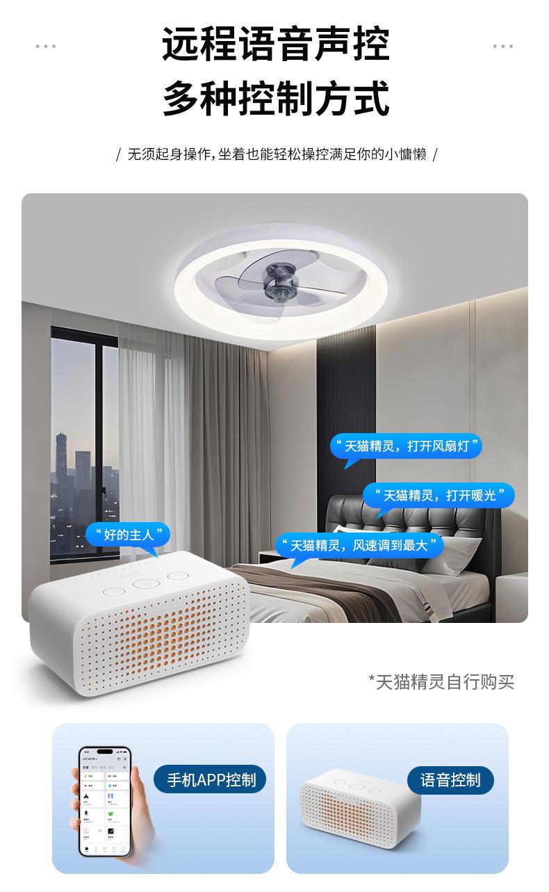 Ventilador de Techo con Luz para Dormitorio 2025 Nuevo Silencioso para Sala de Estar Ventilador de Techo Inteligente por Voz Luz de Ventilador para Restaurante Lámparas Zhongshan