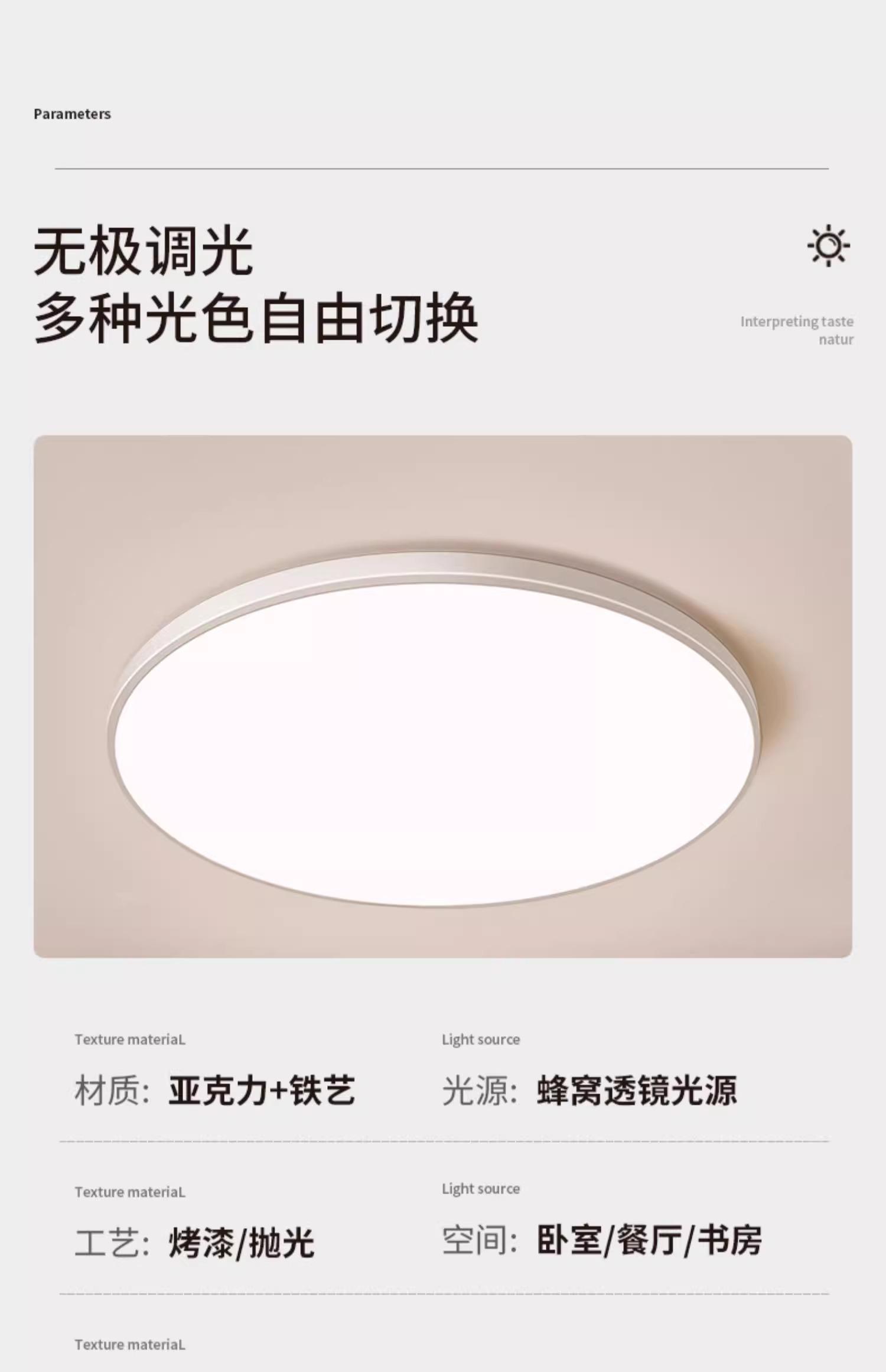 Luz de Techo LED de Espectro Completo con Protección Ocular Ultradelgada Alto CRI Sin Parpadeo Luz para Habitación de Niños Dormitorio Estudio Iluminación Zhongshan