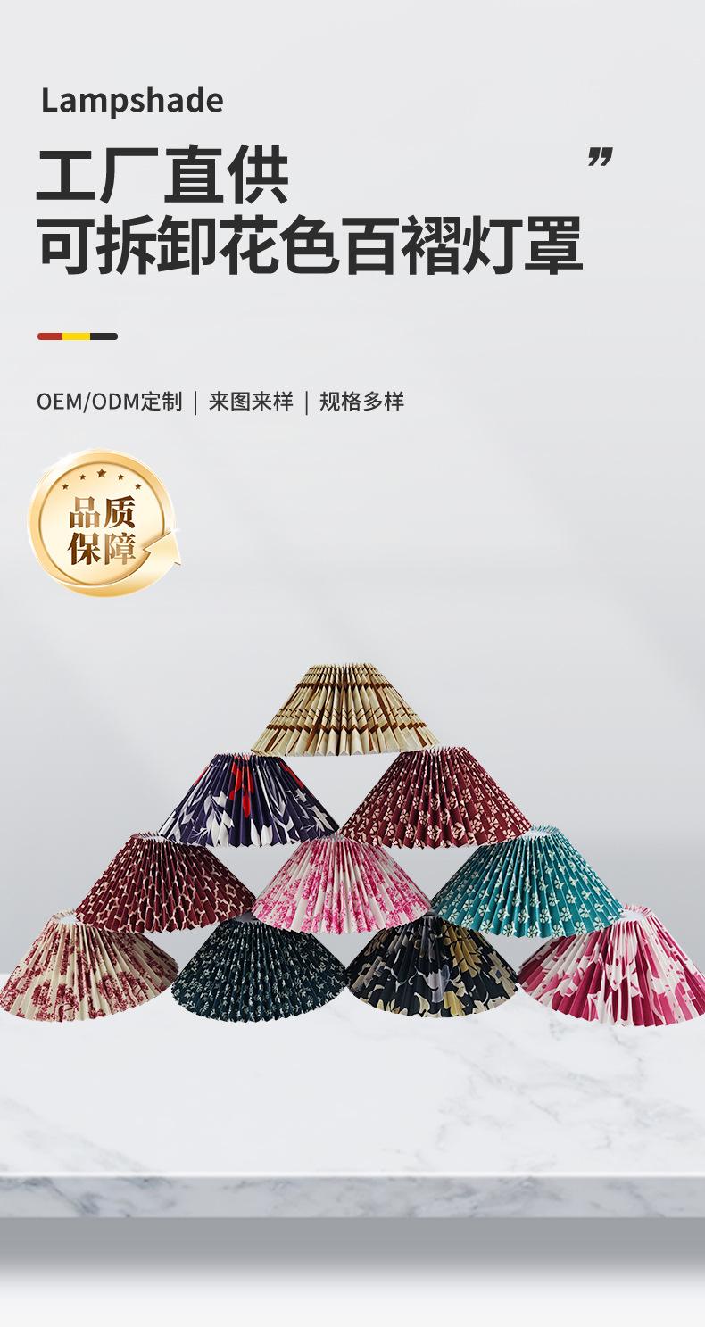 Pantalla plisada de tela estampada Lámpara de mesa de pie Pantalla de noche estilo Ins Nueva pantalla china plegable de tela