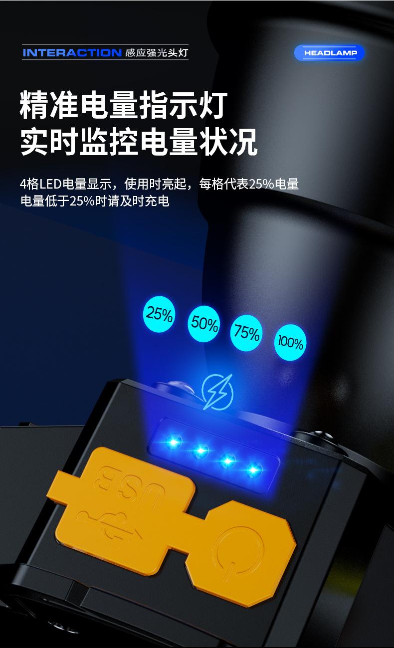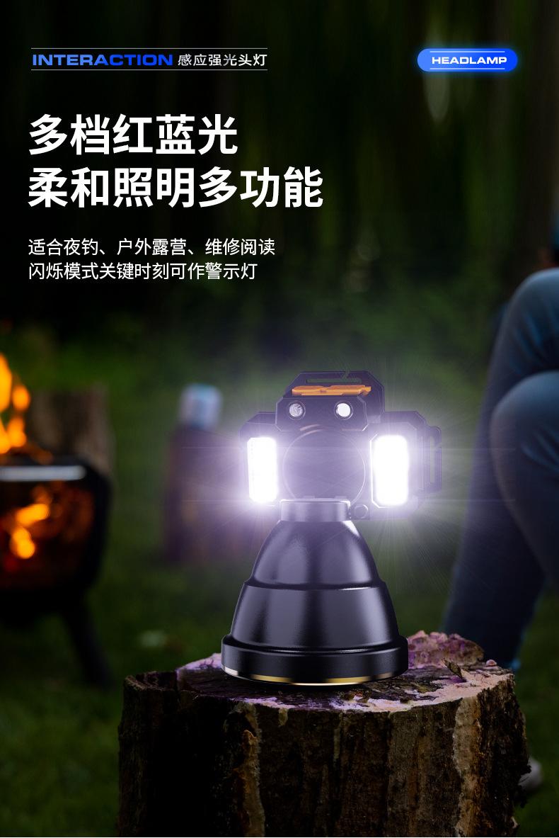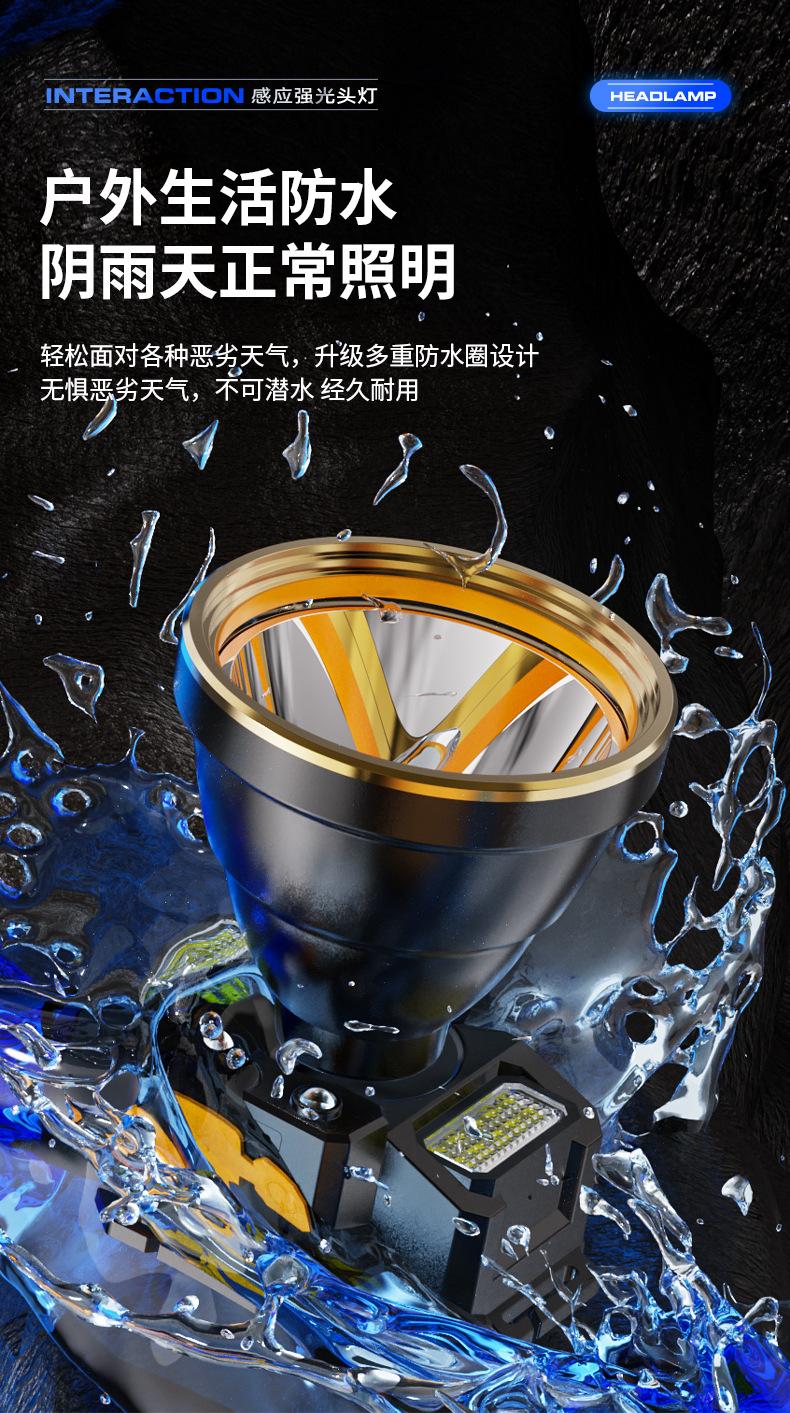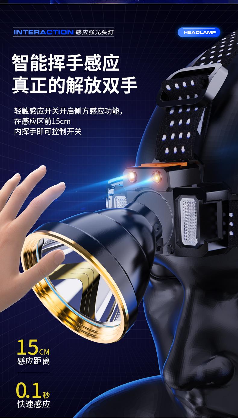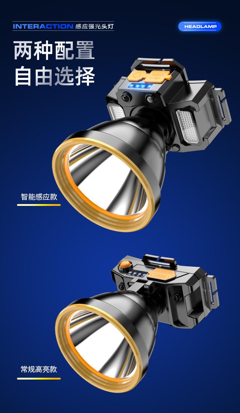 Lámpara Frontal de Inducción Campo Luz Fuerte Larga Duración Batería de Litio Exterior Especial Recargable Lámpara Minera Linterna de Cabeza Lámpara de Pesca