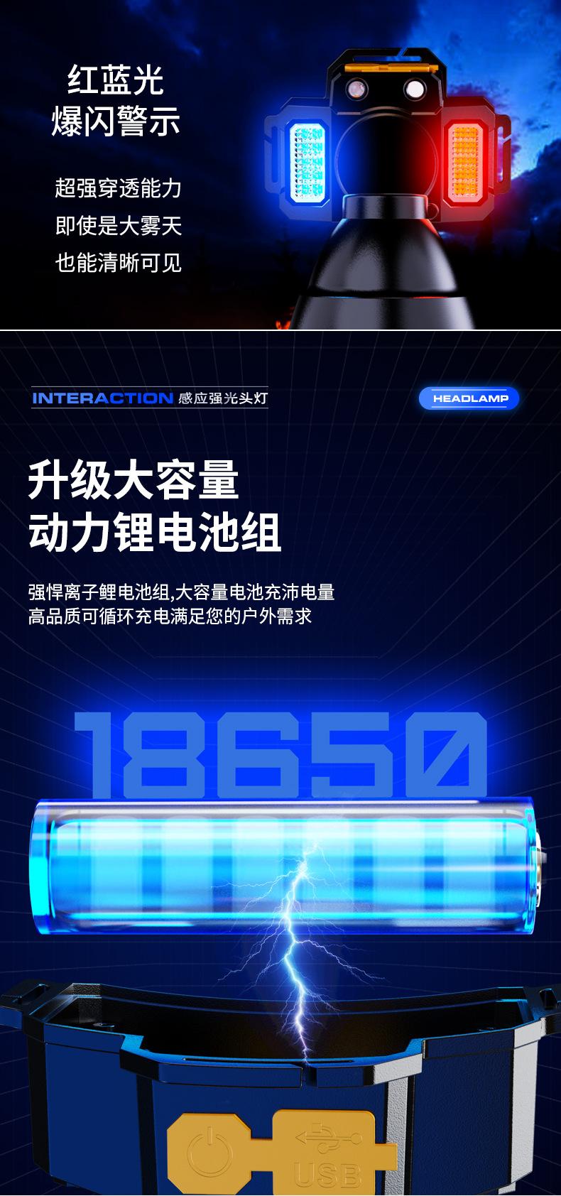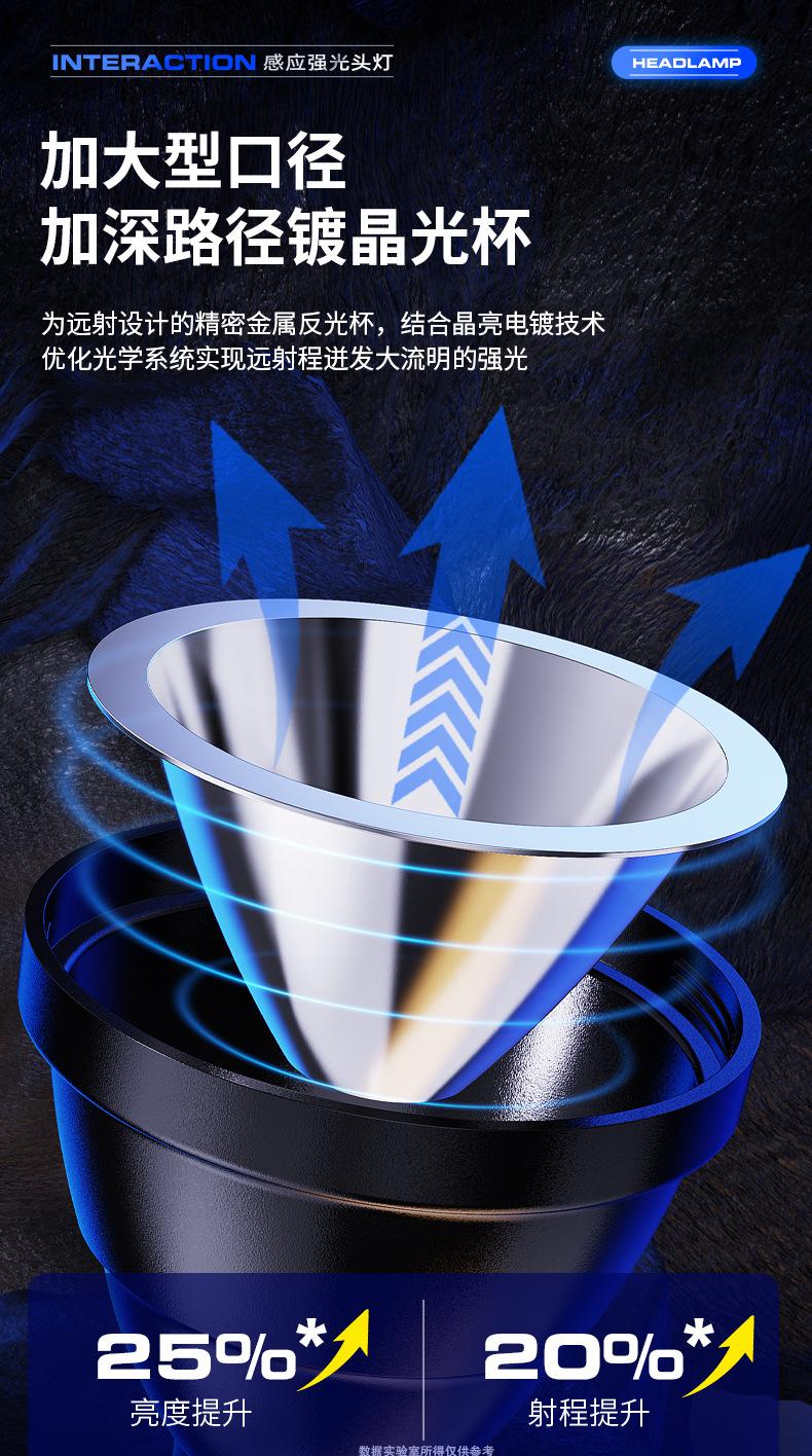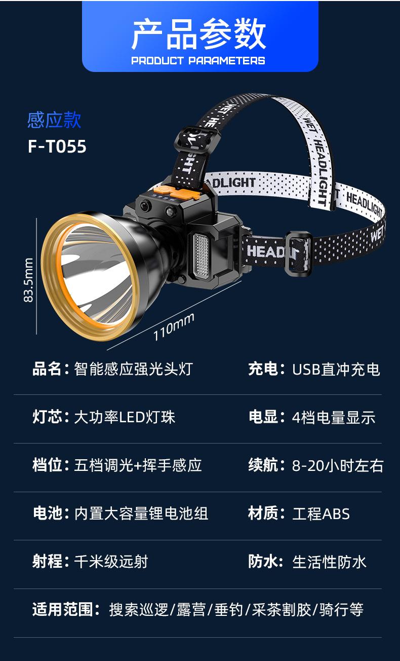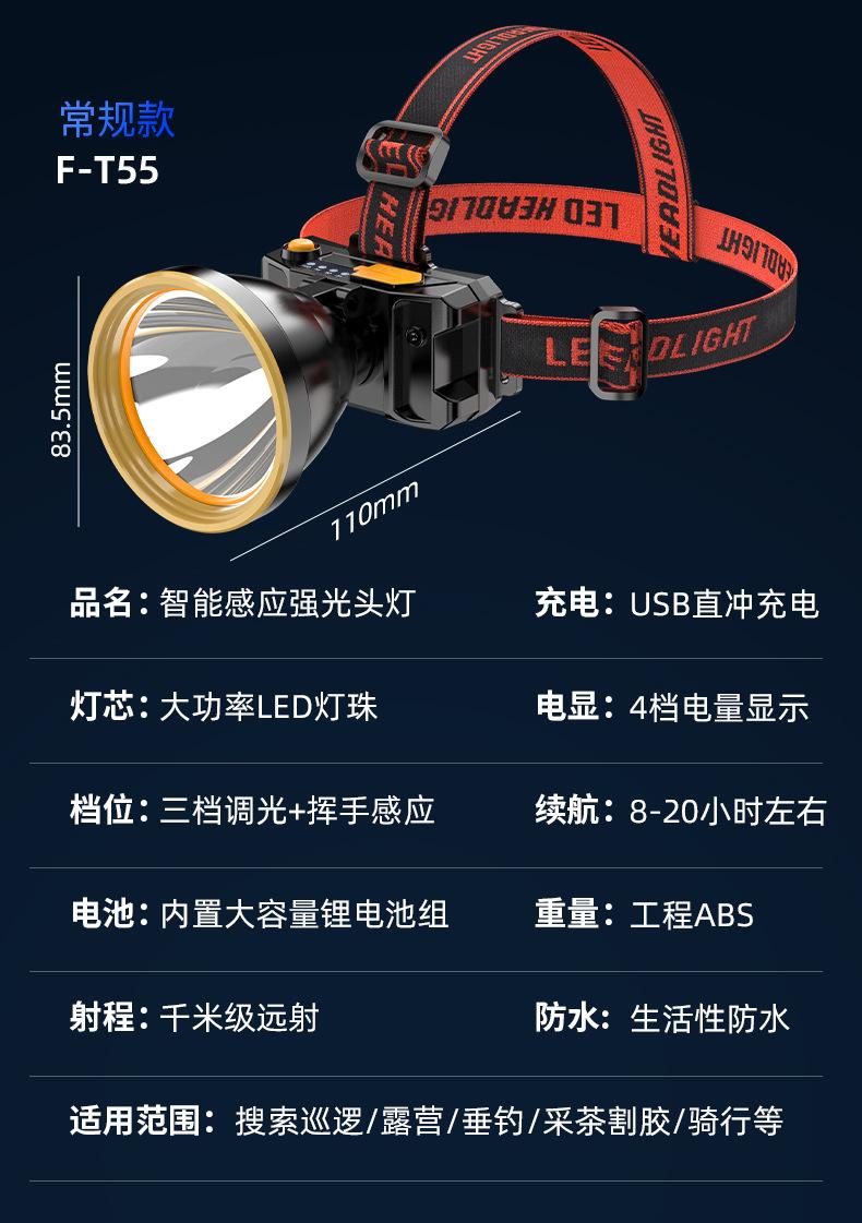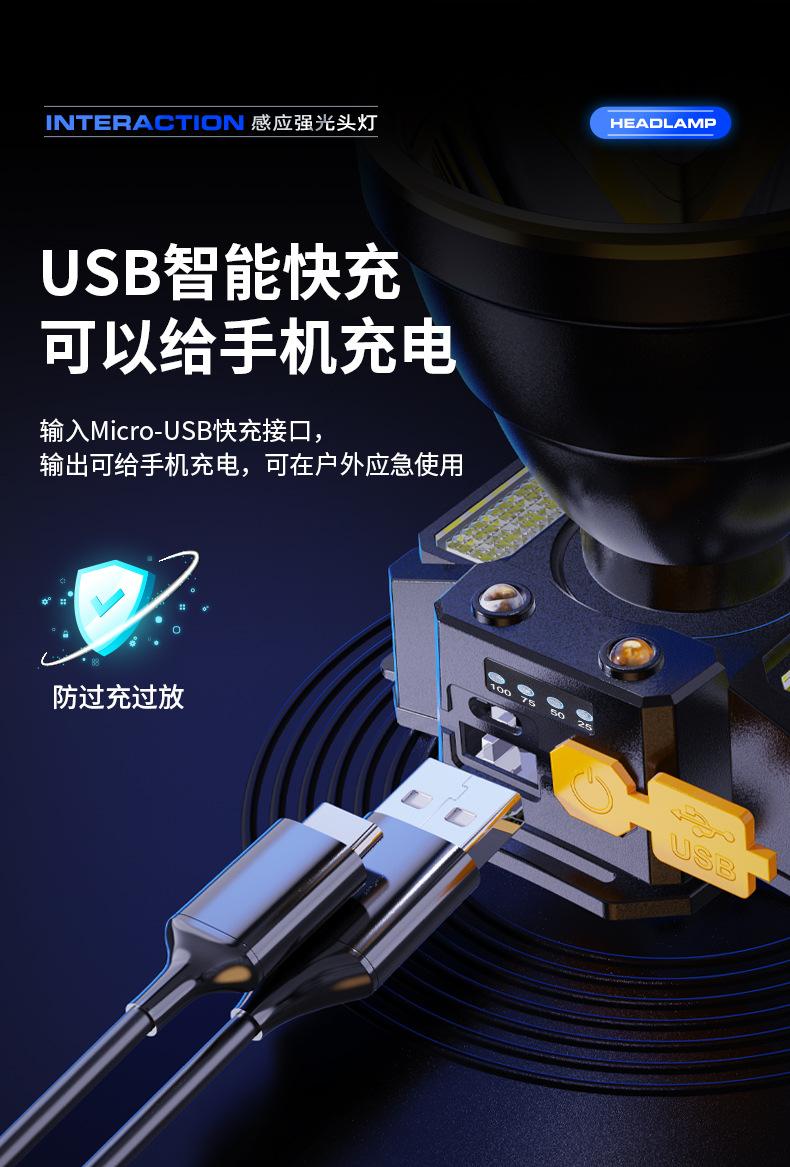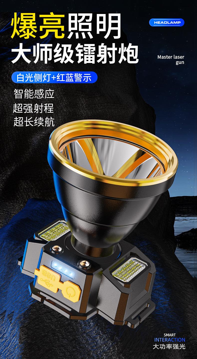 Lámpara Frontal de Inducción Campo Luz Fuerte Larga Duración Batería de Litio Exterior Especial Recargable Lámpara Minera Linterna de Cabeza Lámpara de Pesca