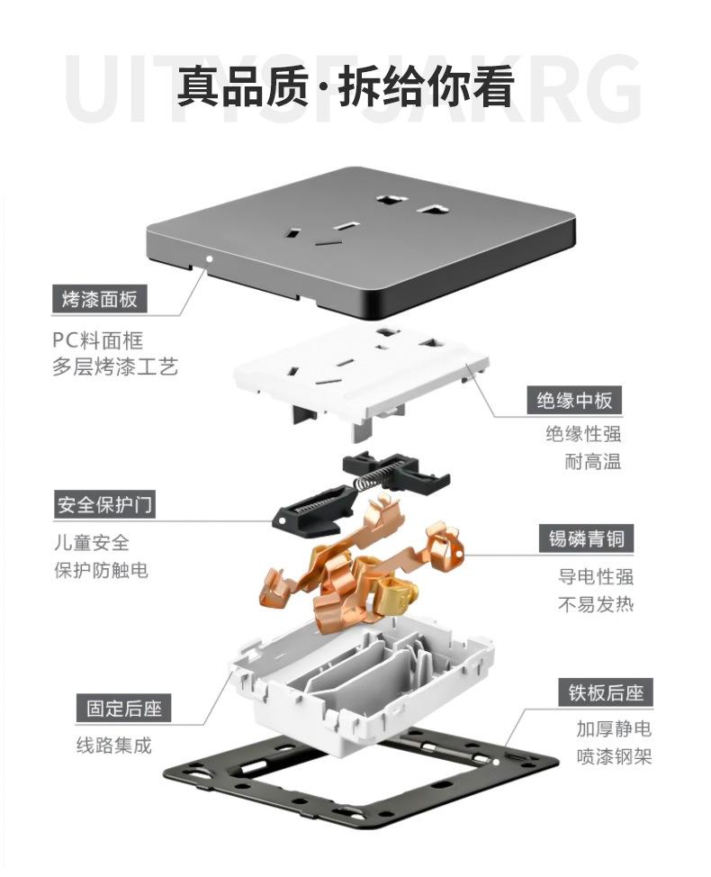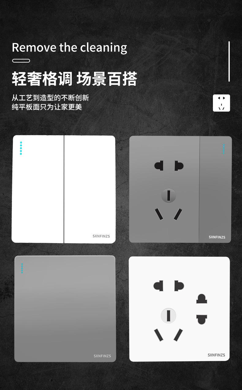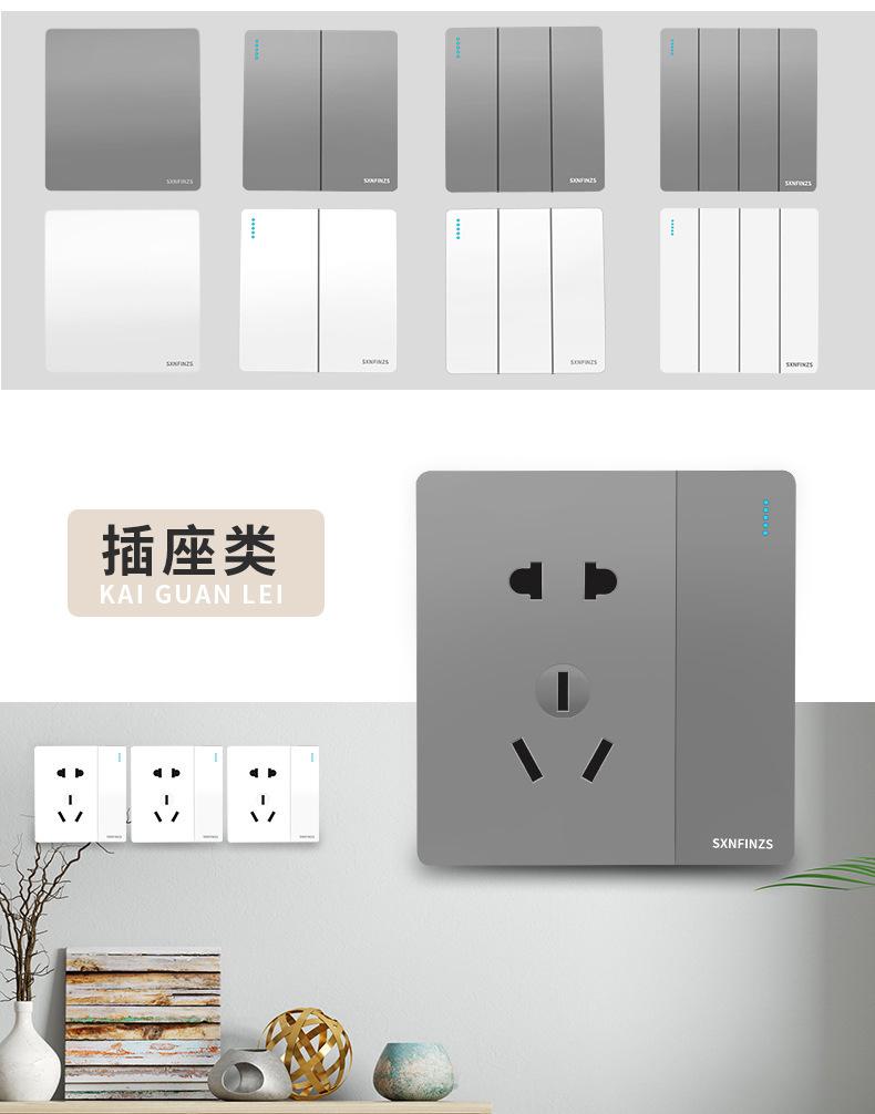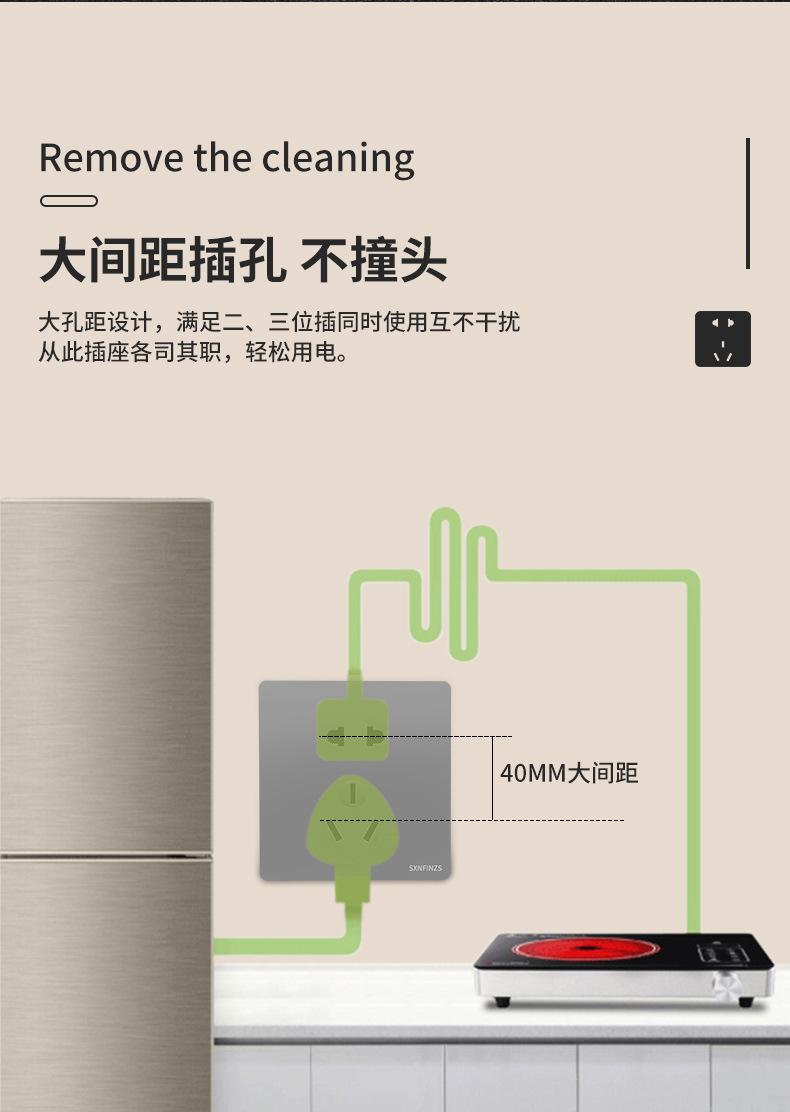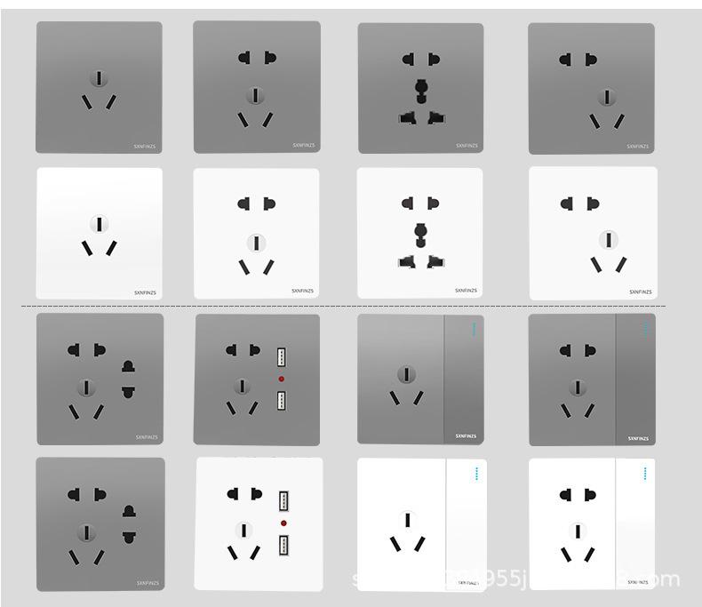 Decoración del hogar tipo 86 oculto M1 gris una abertura cinco orificios enchufable doméstico con 16a pared energía venta al por mayor interruptor toma de corriente