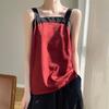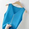 Camisola de Seda de Hielo para Mujer Camiseta Interior Base Verano Top Corto sin Mangas Elegante Perforado Caliente Color Sólido Cuello en V Ajustado