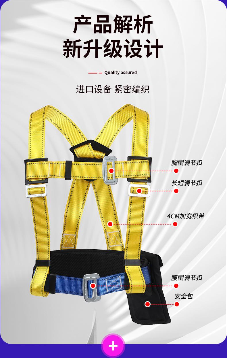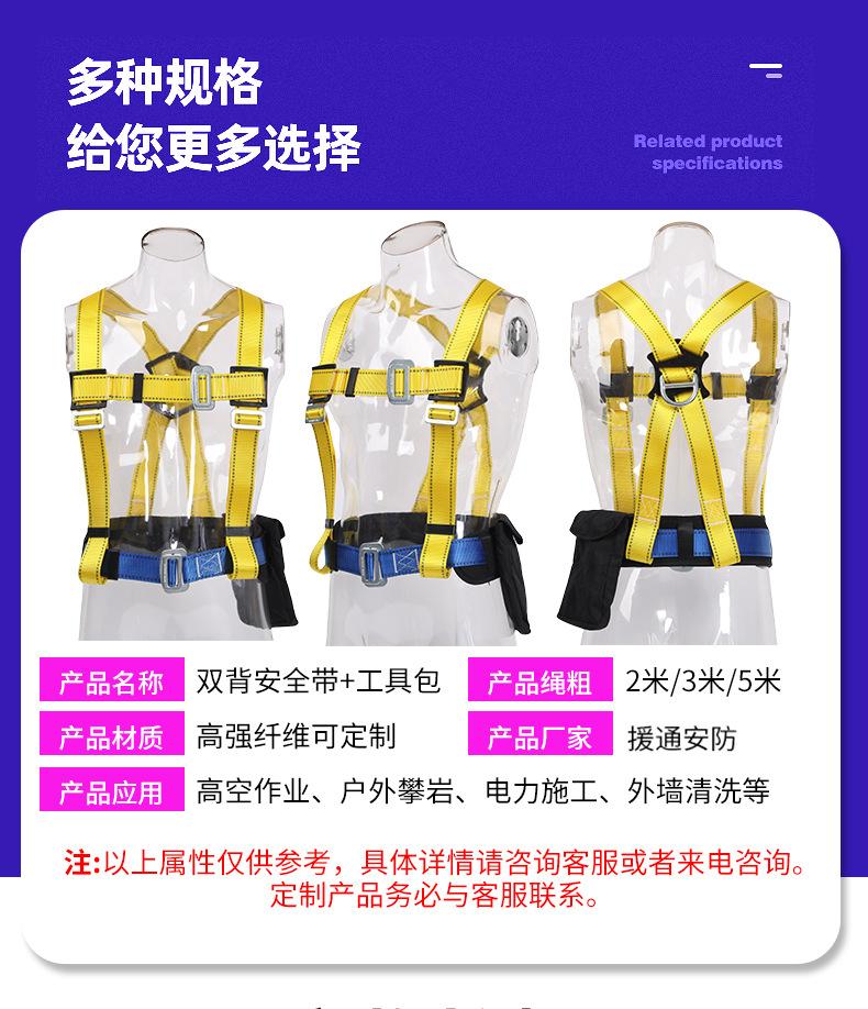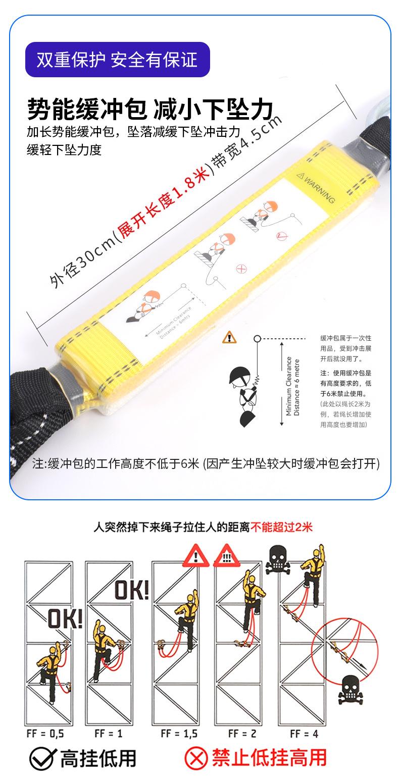 Arnés de Seguridad de Medio Cuerpo de Tres Puntos de Poliéster para Trabajo en Altura Sitio de Construcción Amortiguador Anticaídas Cinturón de Seguridad Doble Espalda Absorción de Impactos