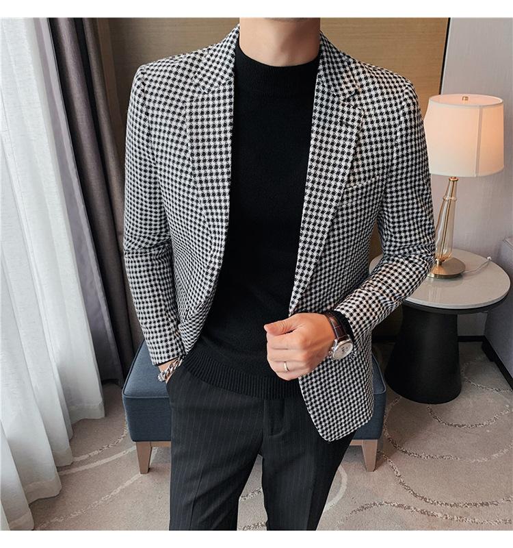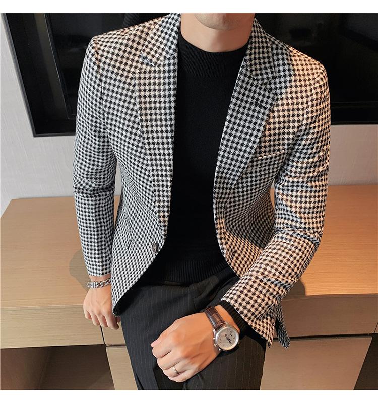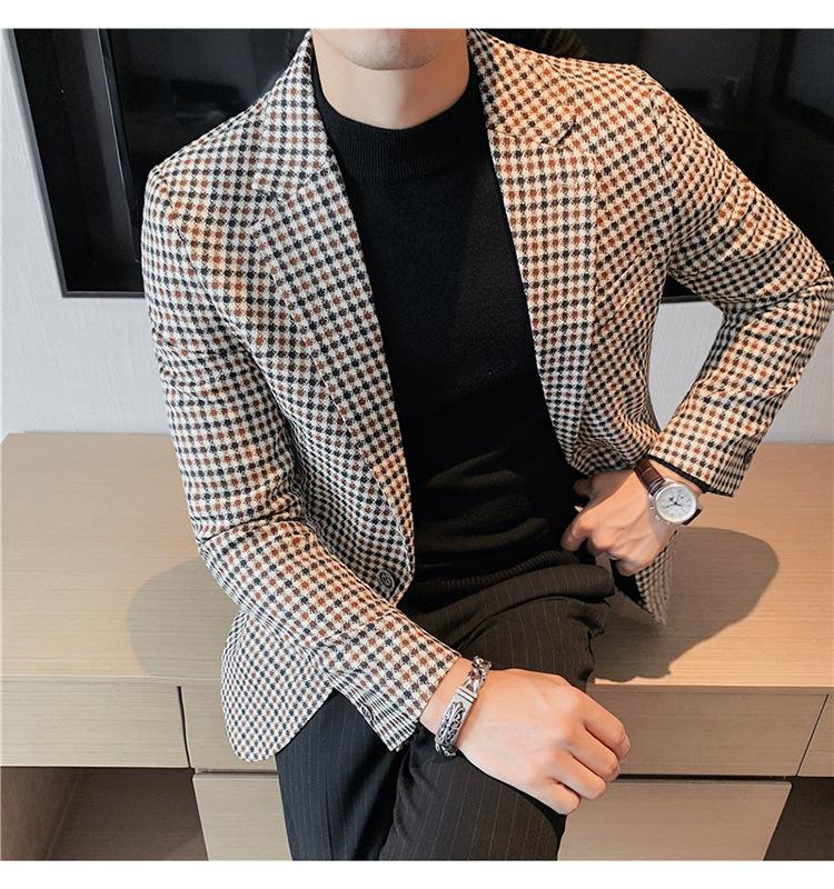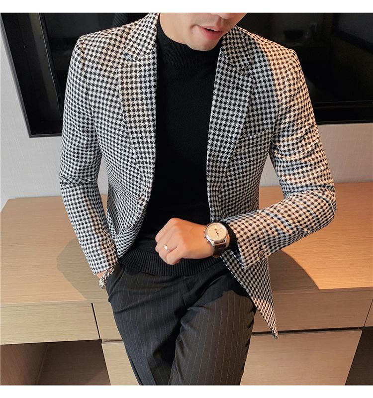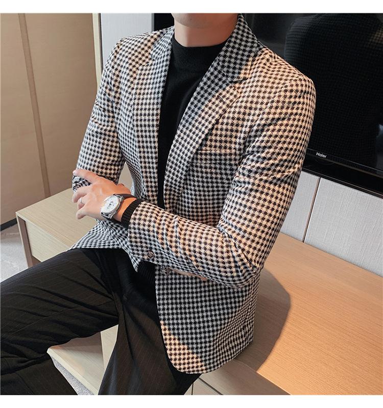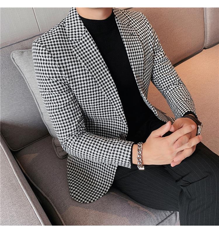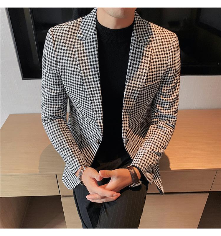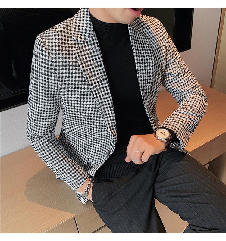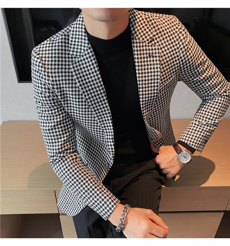 Nuevo otoño 2023 guapo hombre pájaro a cuadros chaqueta de traje individual hombre estilo coreano moda juvenil chaqueta de traje ajustada