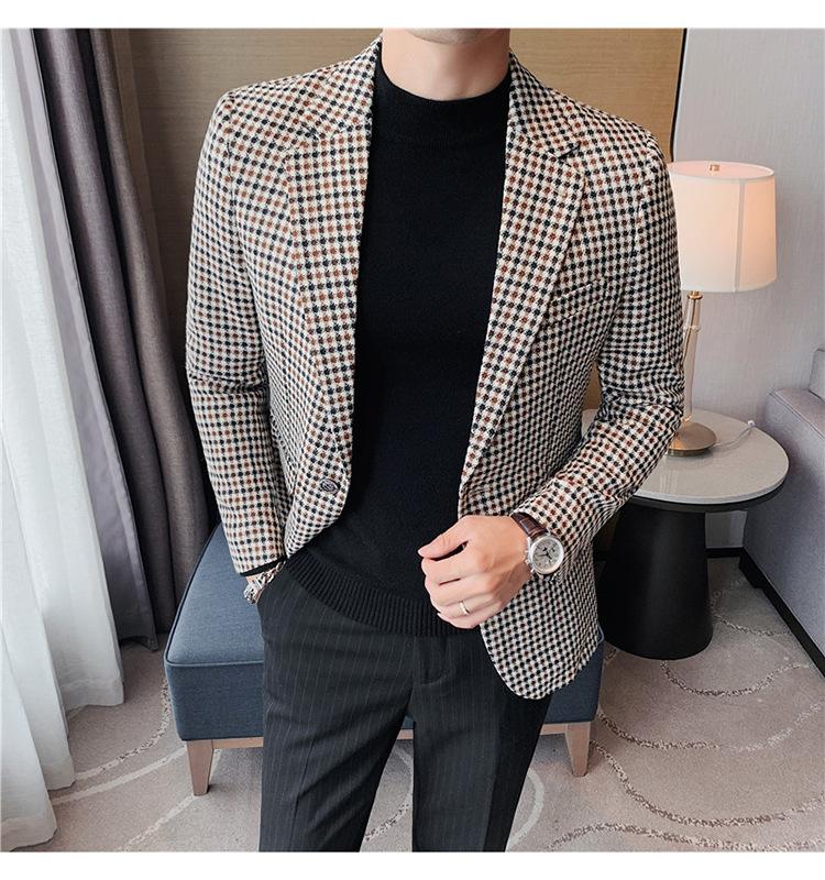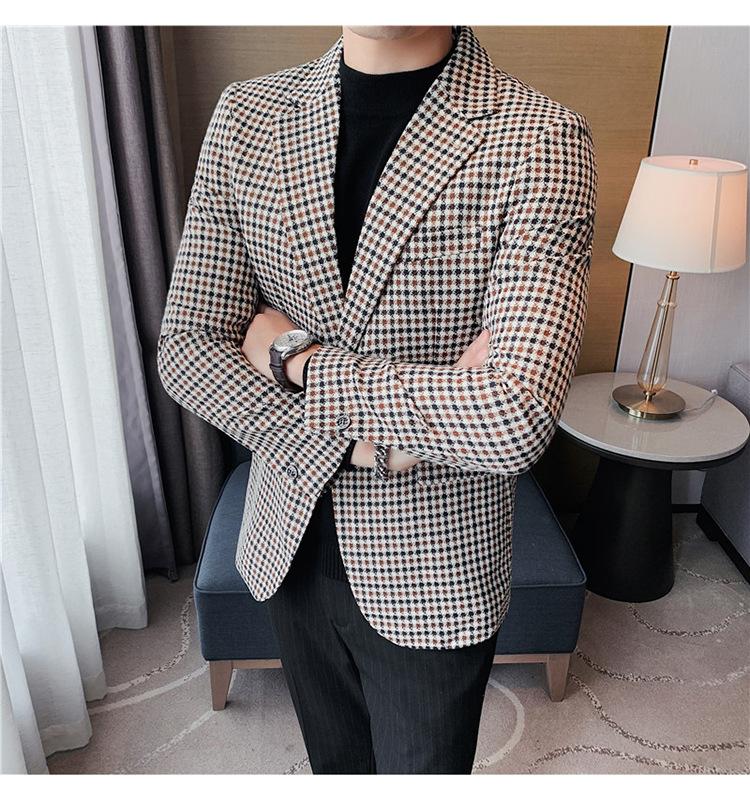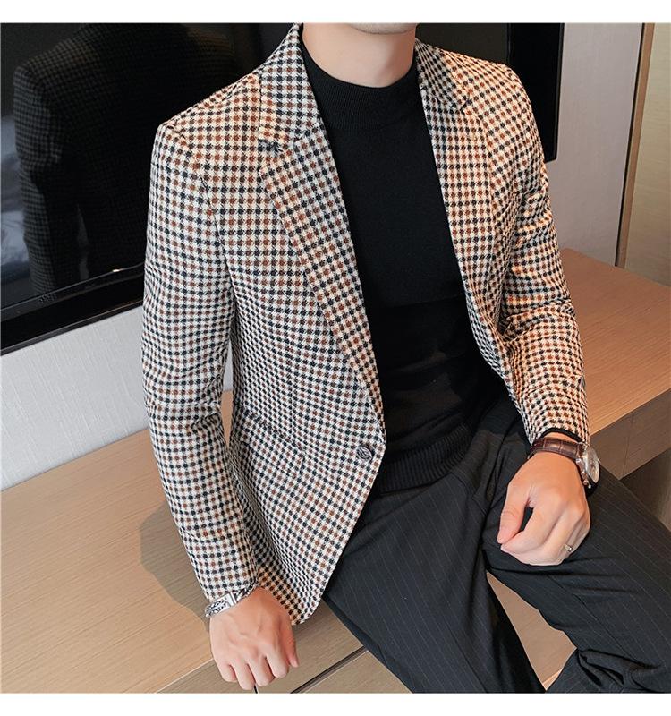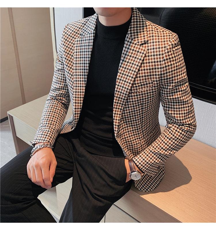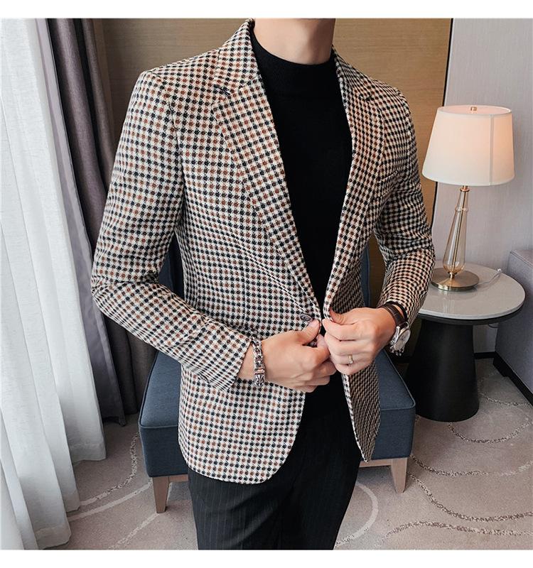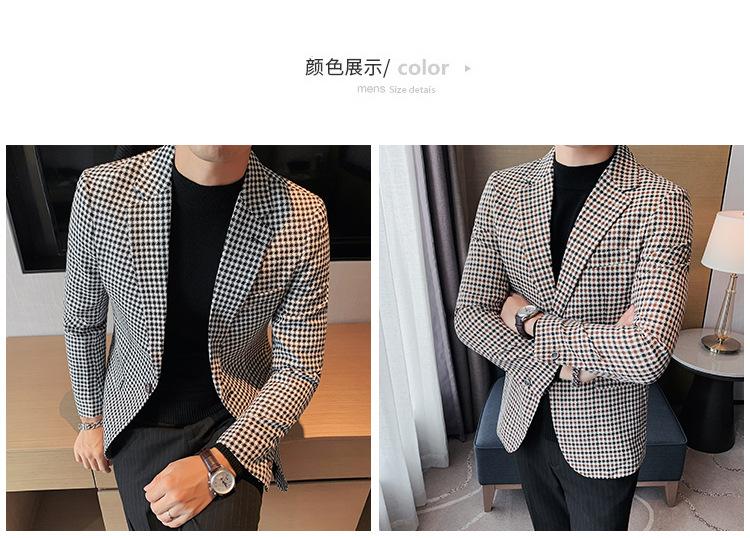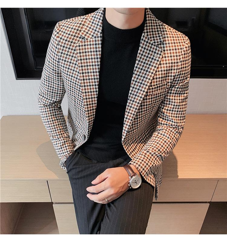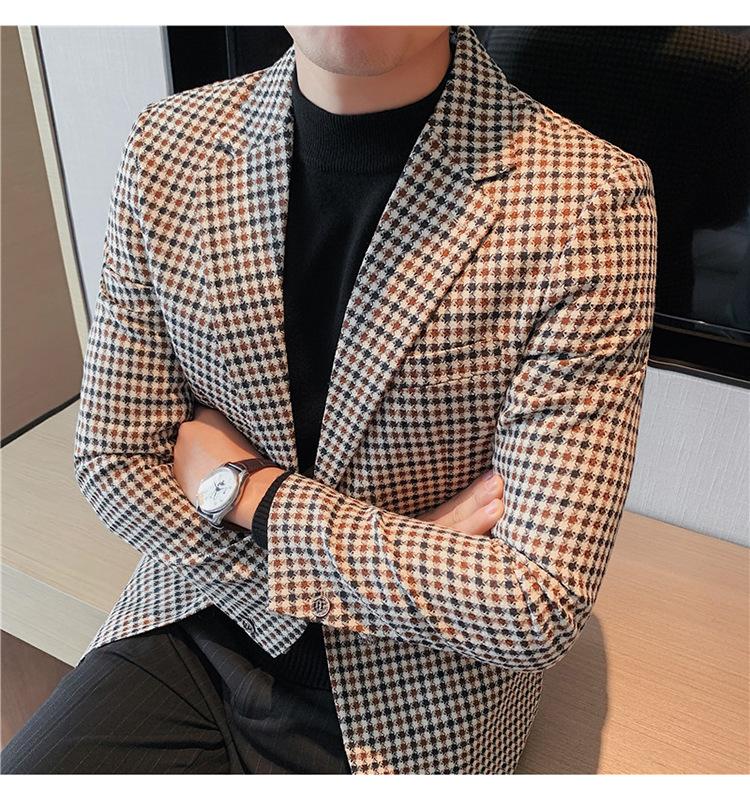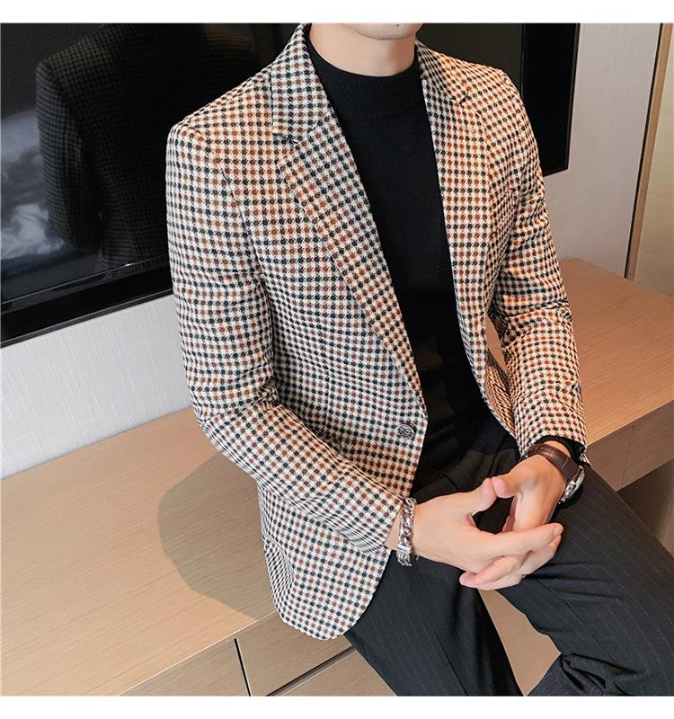 Nuevo otoño 2023 guapo hombre pájaro a cuadros chaqueta de traje individual hombre estilo coreano moda juvenil chaqueta de traje ajustada