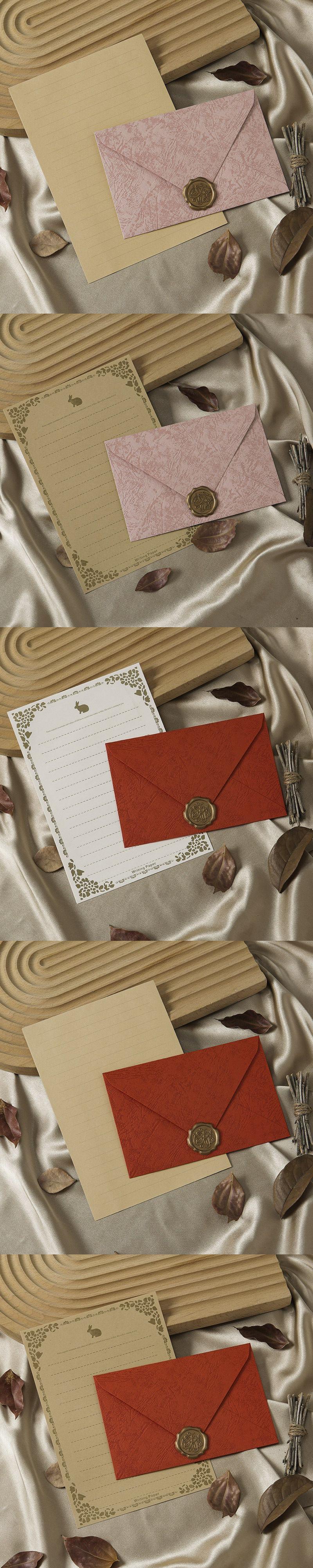 3 envelopes + 10 white rabbit letter papers + 3 fire paint stamps, 3 envelopes + 10 cowhide rabbit stationery ...