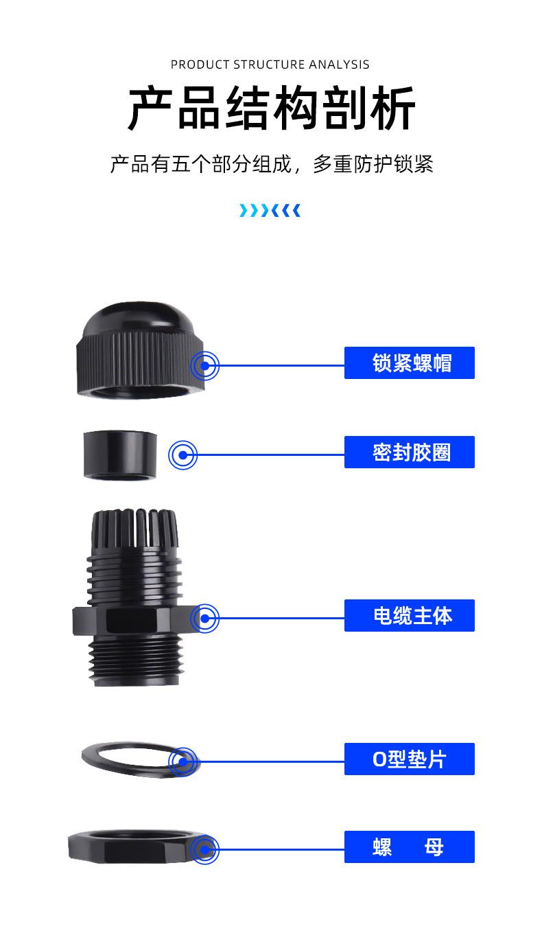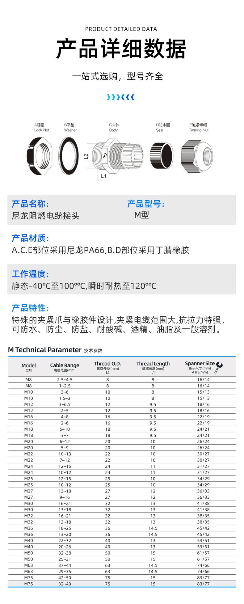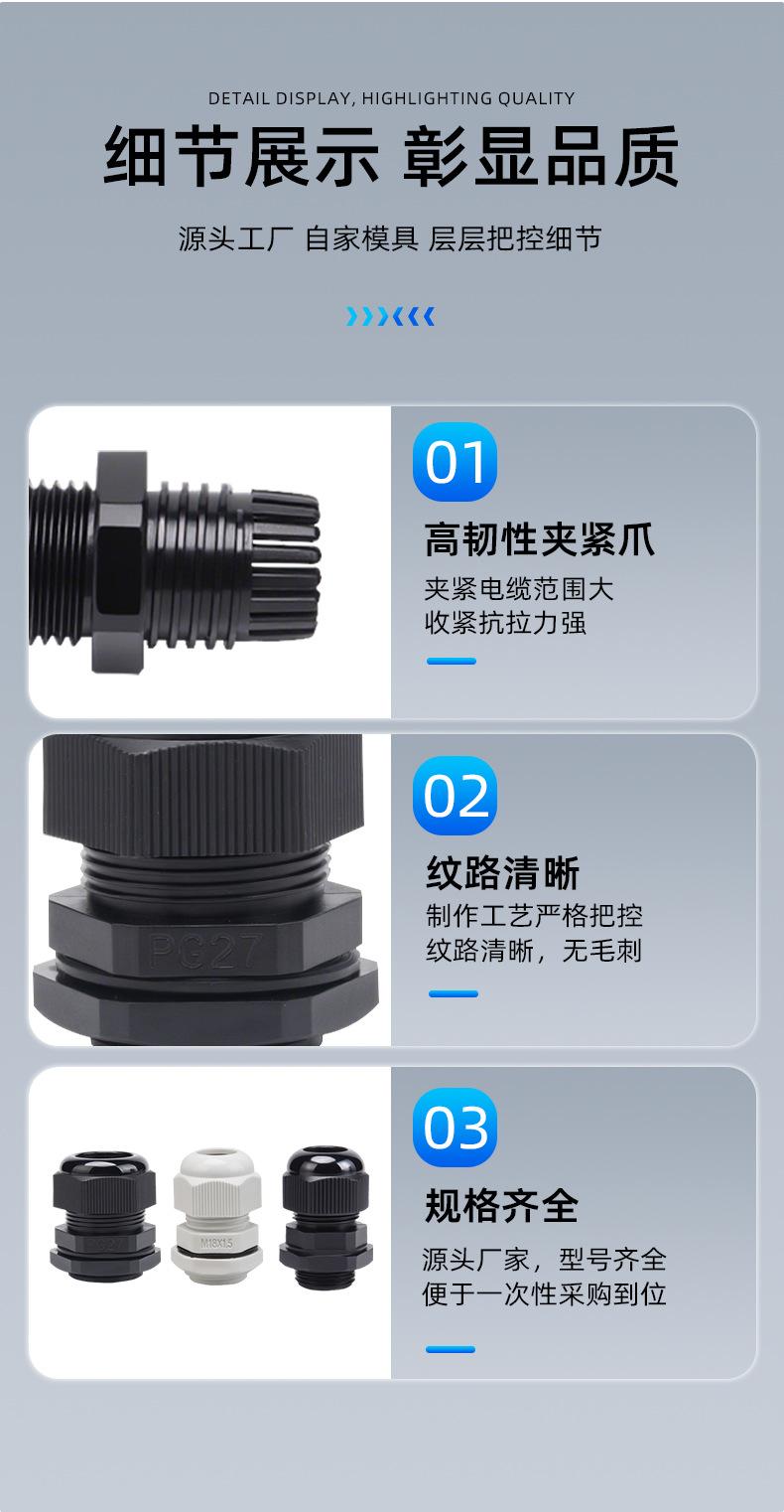 Prensaestopa de Conector de Plástico Ip68 Nylon Sellado Cabeza de Fijación de Cable Cable Impermeable Accesorios de Conector Retardantes de Llama