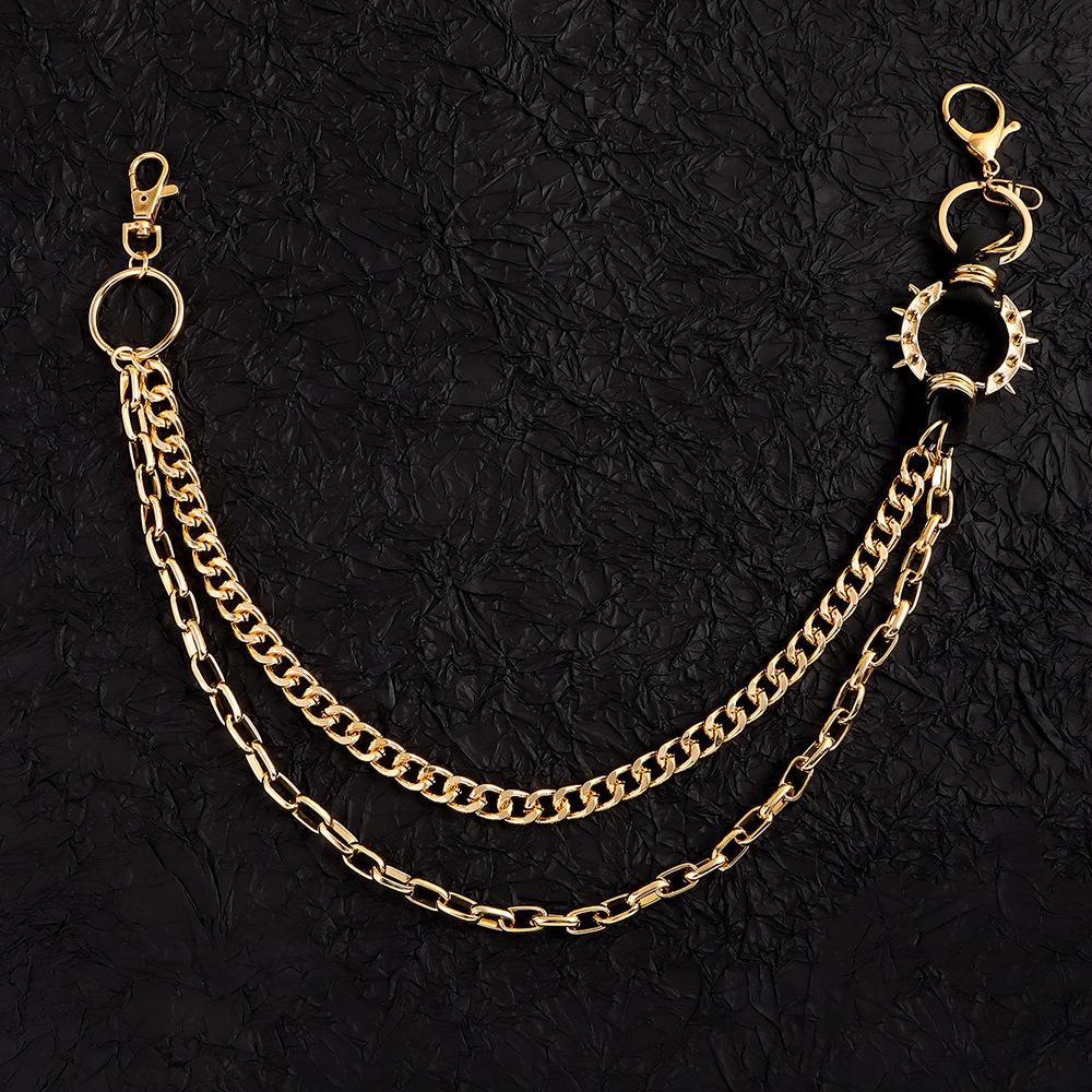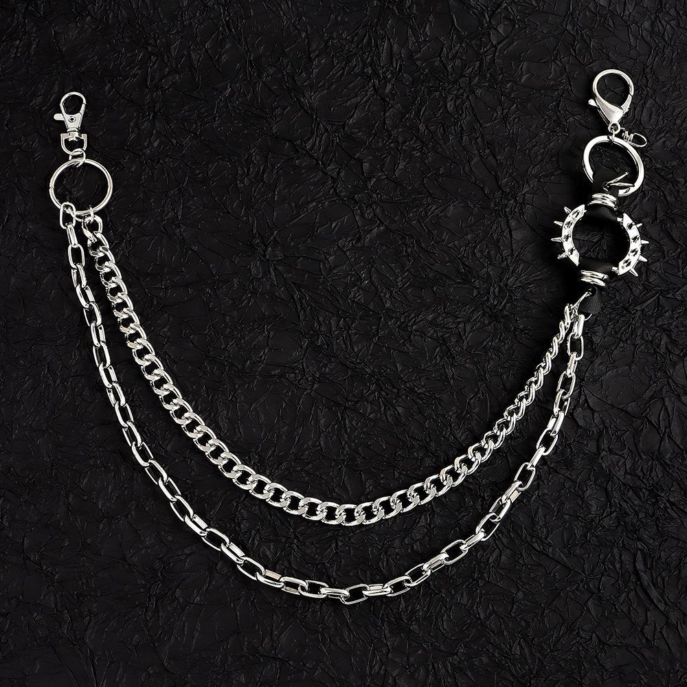 Marca de moda directa de fábrica exagerada retro cool metal punk rock hip hop con púas accesorios de cintura para hombre cadena para pantalón