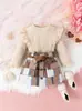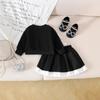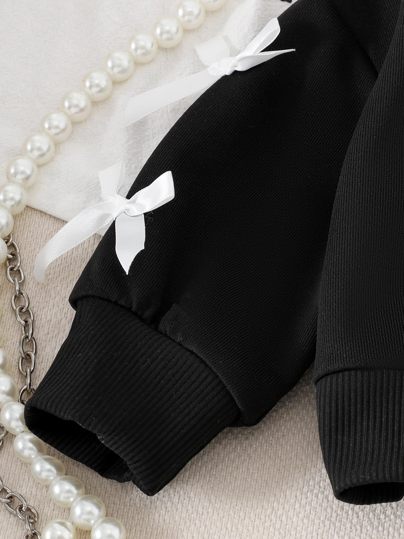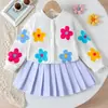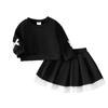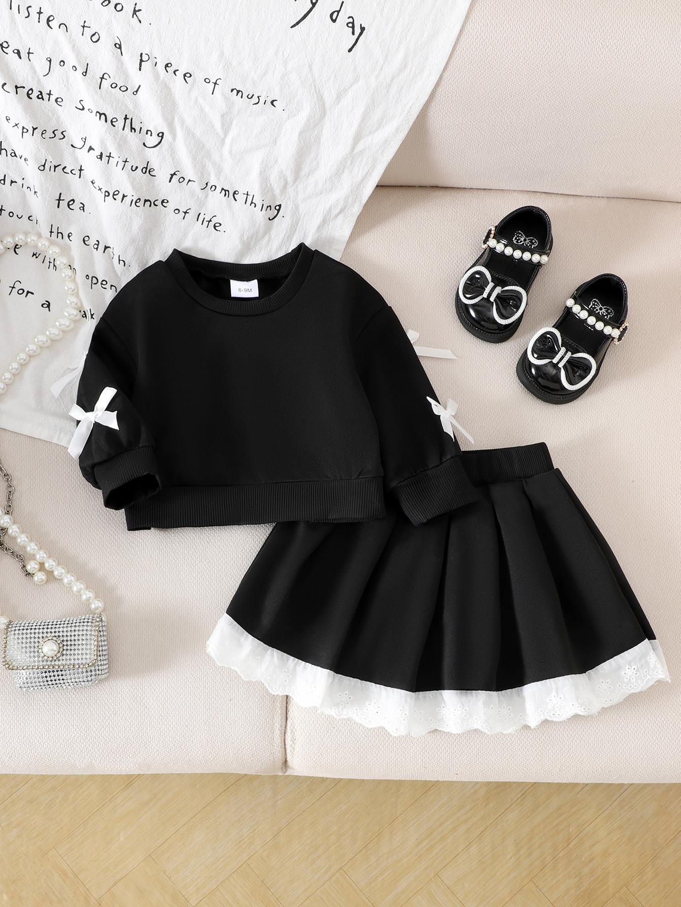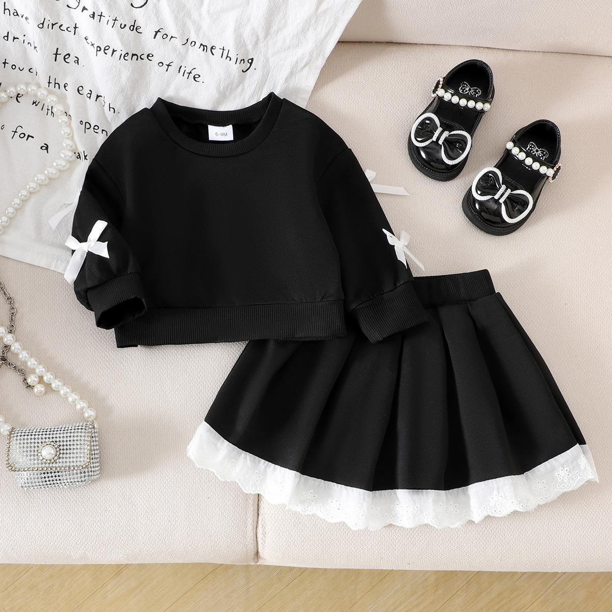 Conjunto Transfronterizo de Amazon para Niñas Europeas y Americanas Otoño Nuevo Color Sólido Lazo Sudadera de Manga Larga Conjunto de Falda Plisada