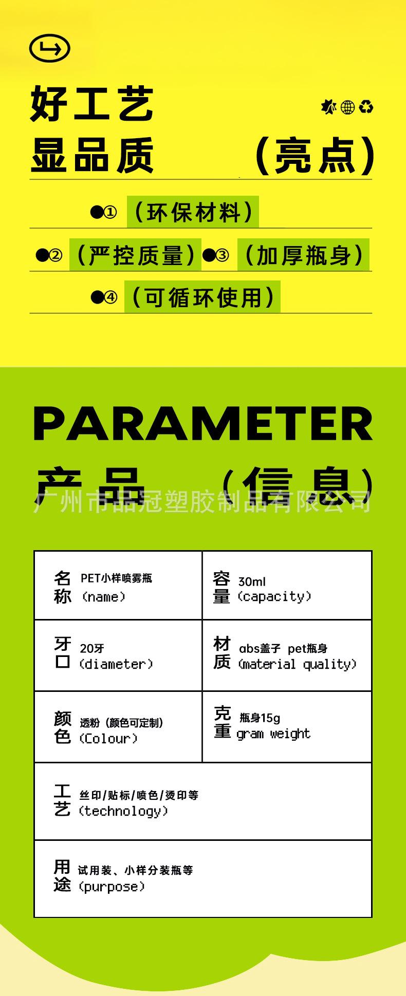 Botella de Loción PET Botella Vacía 30ml Botella de Loción Esencia Botella de Plástico Cosmético Spray Botella Vacía Muestra Sub-Embotellado