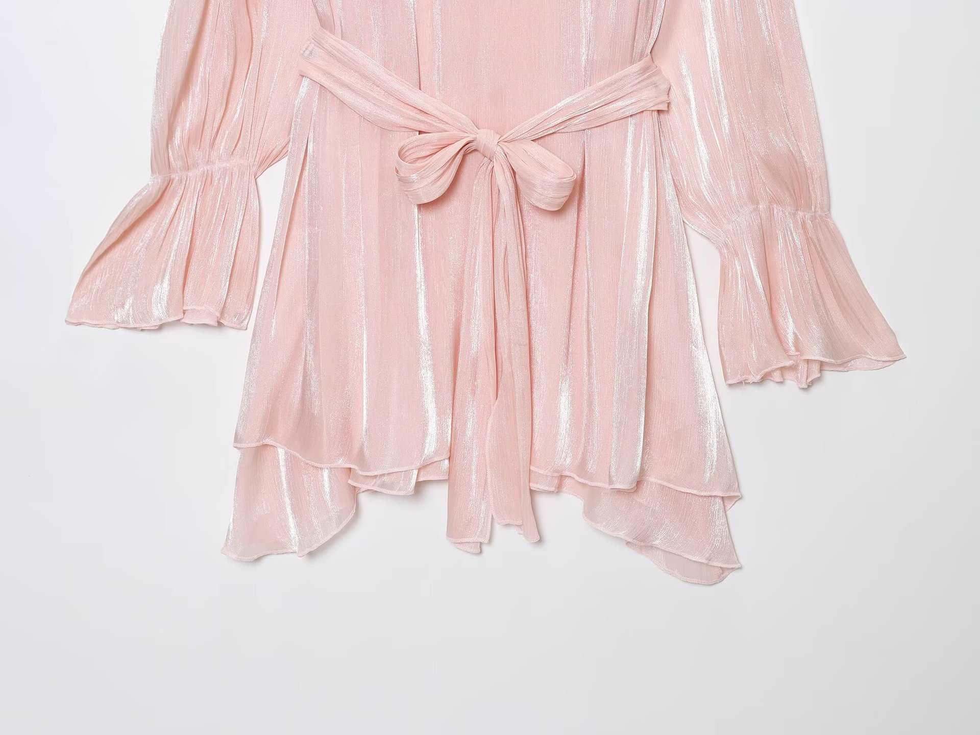 Vestido Falda de Verano Transfronterizo de Manga Acampanada con Cintura Ajustada y Cuello Corto Fresco para Mujer Europeo y Americano Suelto Nueva Moda