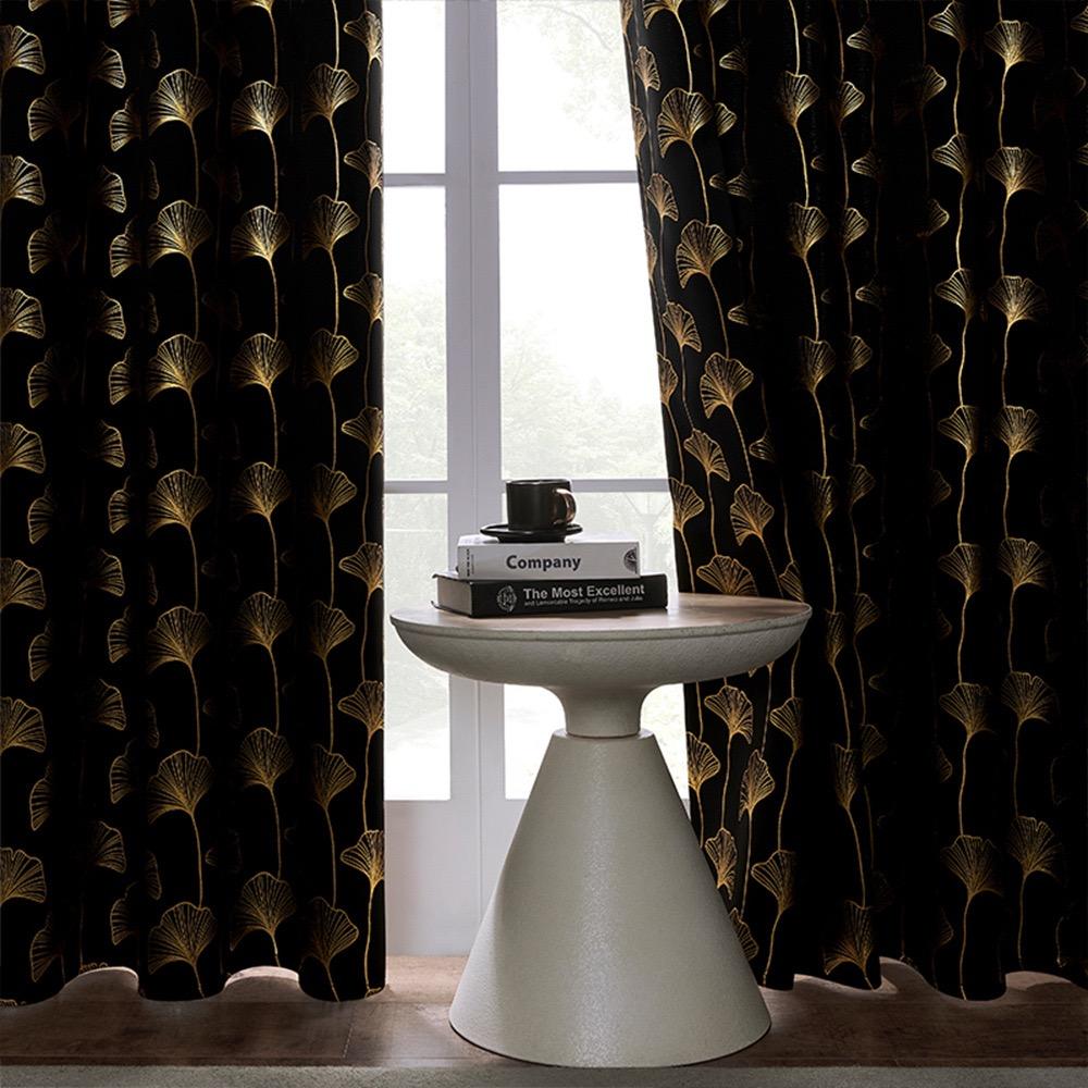 Cortina Blackout con Estampado de Hoja Dorada para Sala de Estar y Dormitorio, Cortina con Ojales