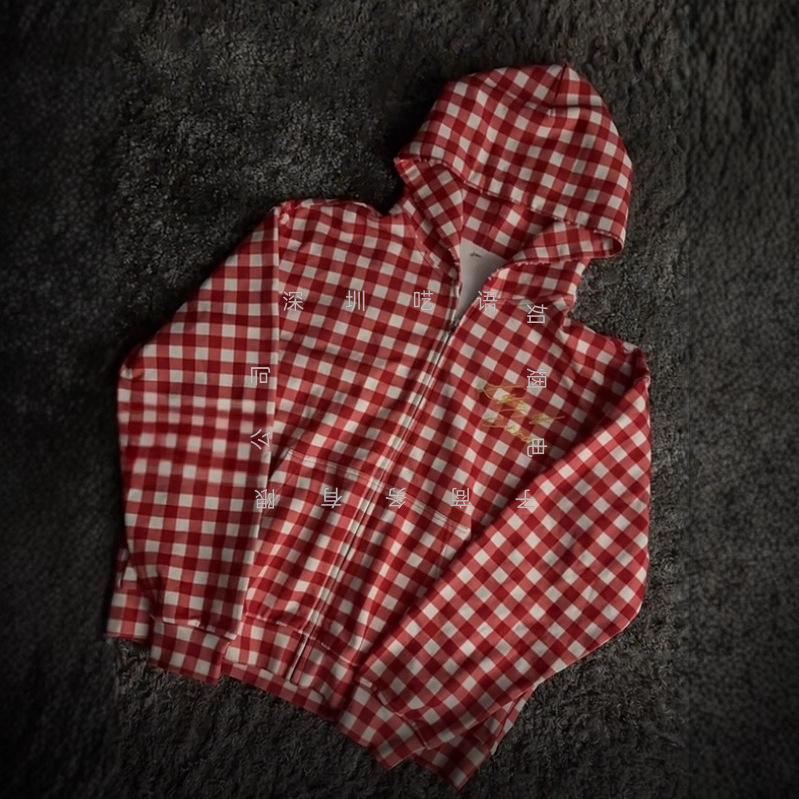 Sudadera con Capucha con Cremallera Personalidad Comercio Exterior Europeo y Americano Bordado Tartán Rojo Manga Larga Jersey Sudadera con Capucha Chaqueta Vintage Tendencia