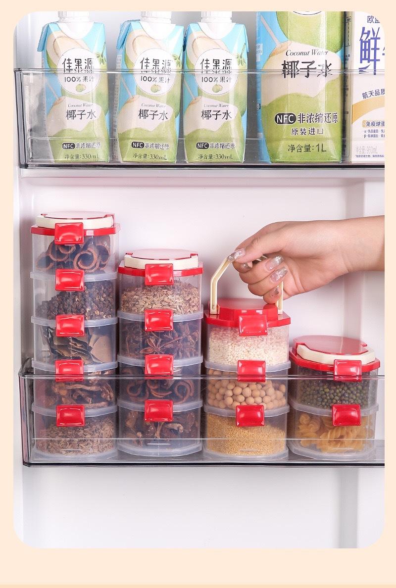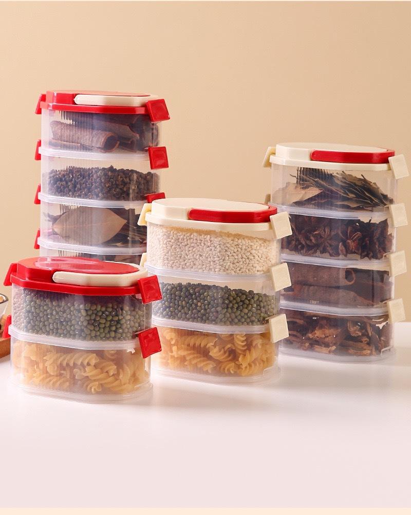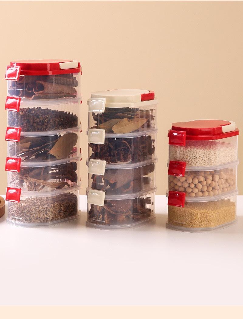 Nueva Caja de Almacenamiento de Especias Cebollín, Jengibre y Ajo Tarro de Especias Hogar Cocina Apilable Caja Sellada Tarro de Almacenamiento Tarro Sellado Dividido