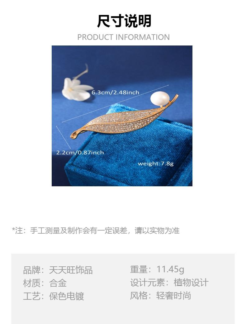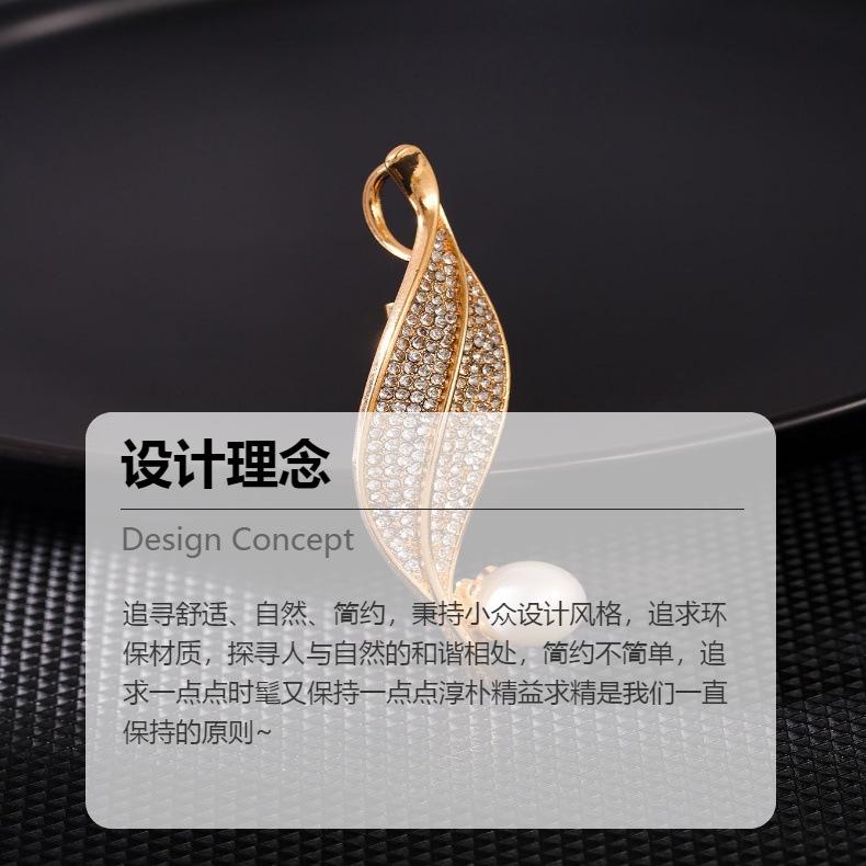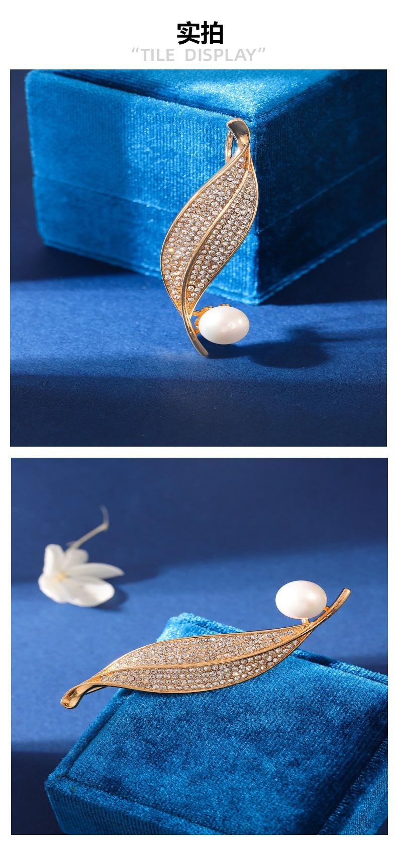 Broche Hoja Nueva Broche de Aleación de Pedrería de Alta Gama para Mujer Corsage de Planta Combinable Sensación de Alta Gama Accesorios Pin Decorativo