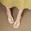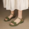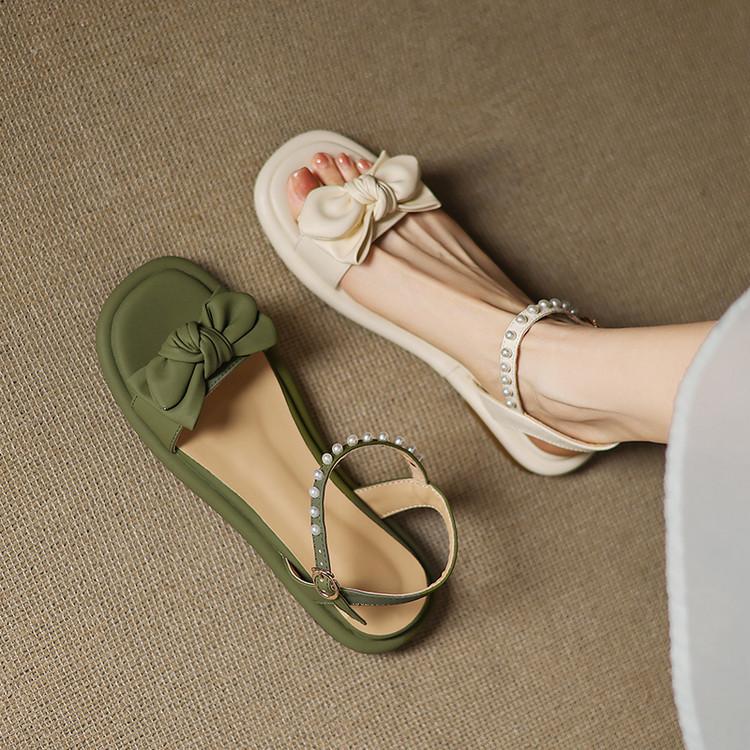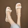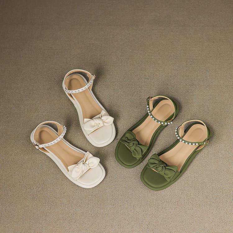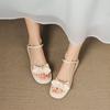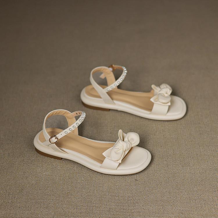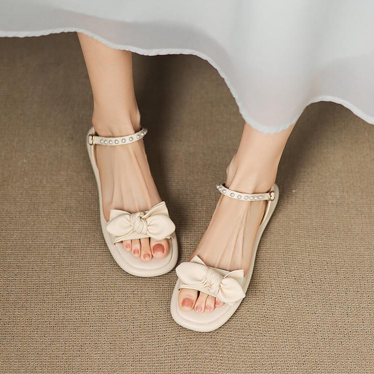 Zapatos Nuevos de Mujer Hebilla Sandalias Anchas Sandalias Planas de Verano para Mujer Suela Suave de Goma Zapatos de Talla Grande de Punta Redonda Estilo Coreano Blanco