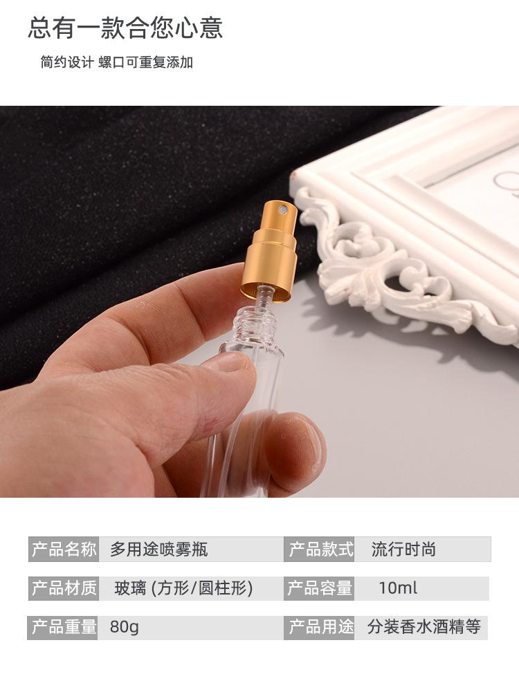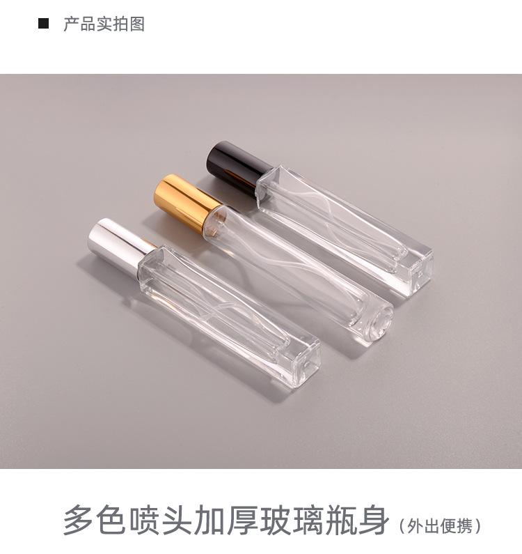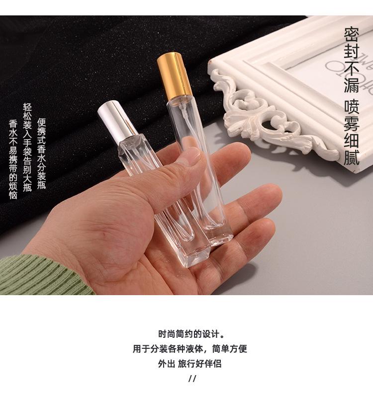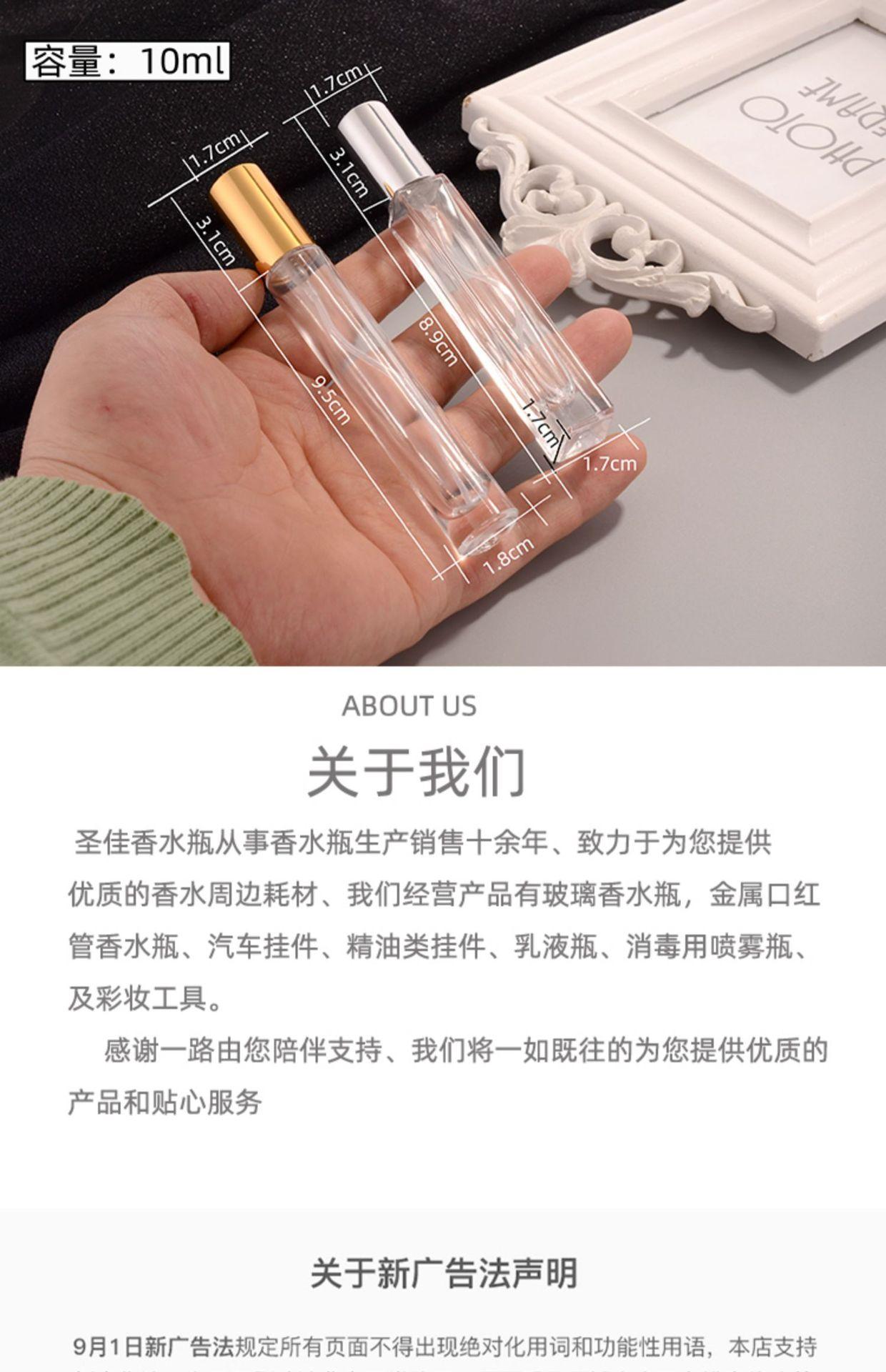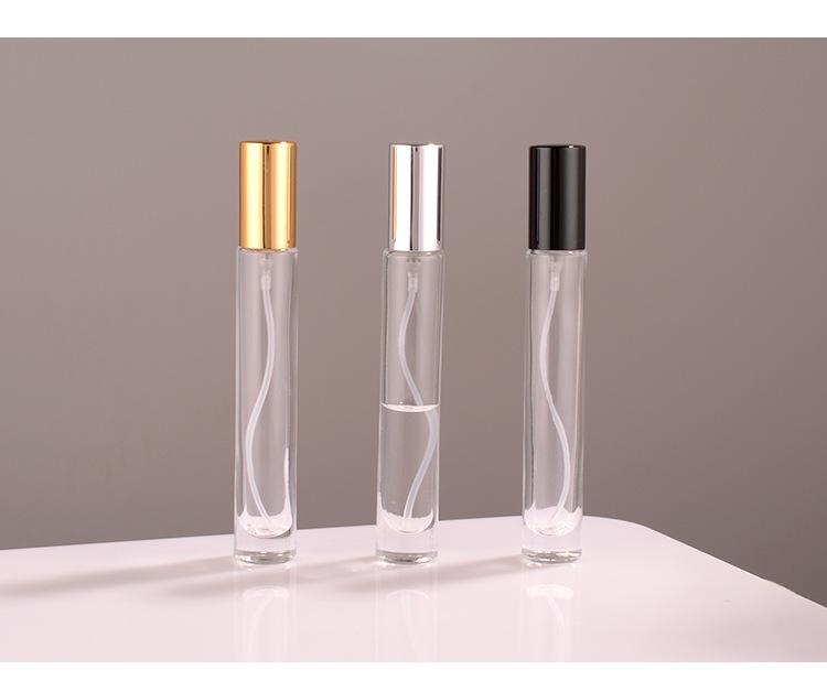 Botella de perfume en stock, botella de 10 ml, botella de perfume portátil, botella vacía de repuesto, botella de spray de viaje, botella de vidrio de muestra