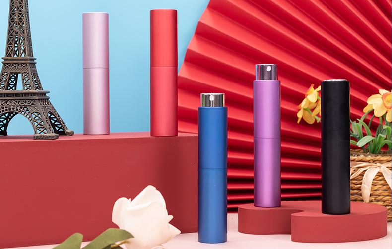 Botella de Perfume Giratoria 10ml Botella de Muestra Tipo Presión Botella Recargable de Perfume Spray de Vidrio Botella Vacía Portátil Pequeña Capacidad