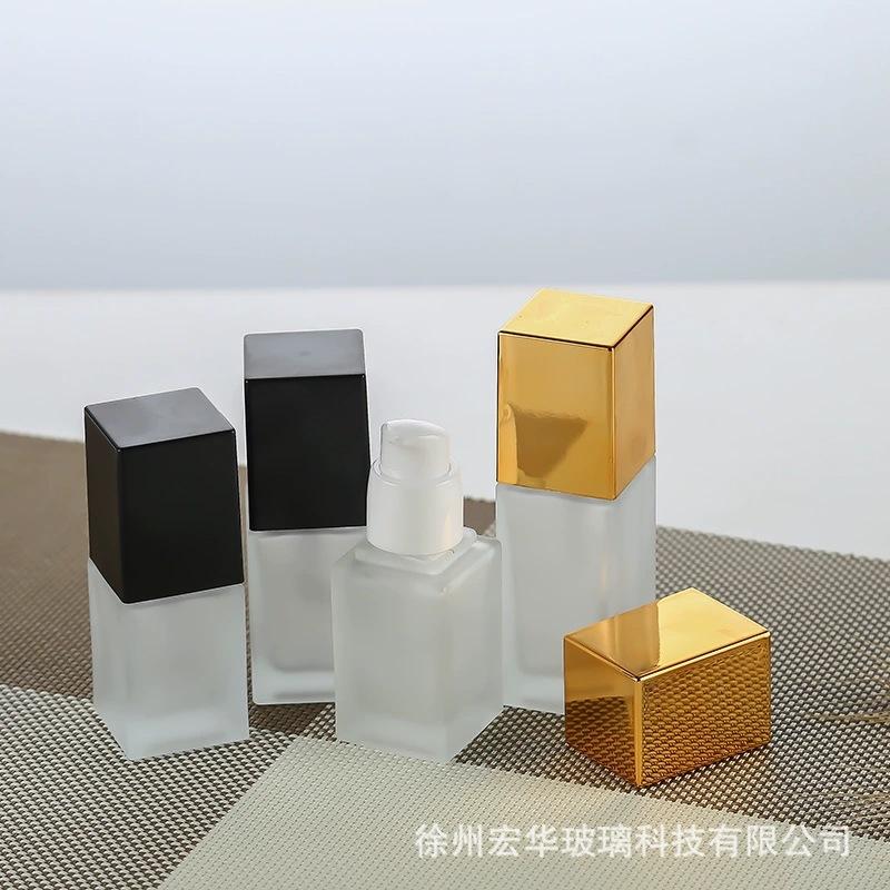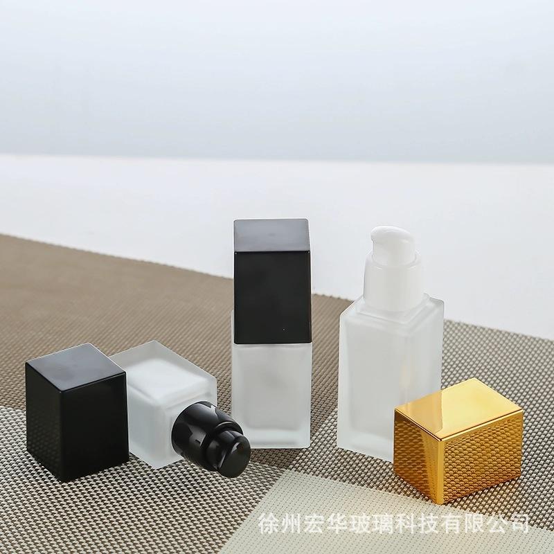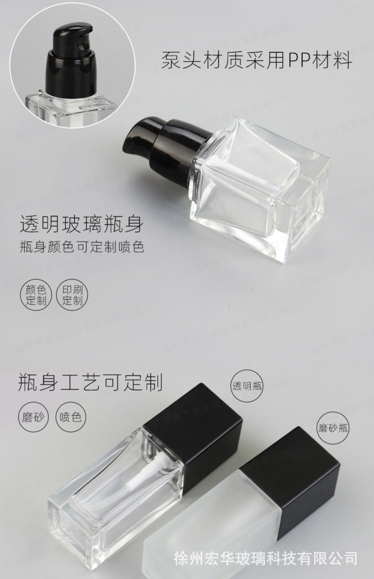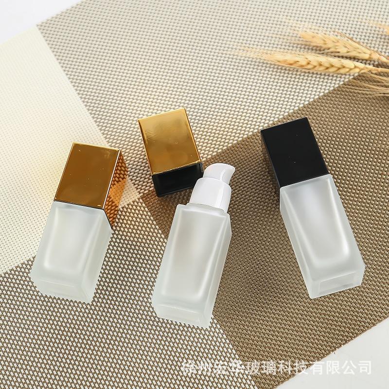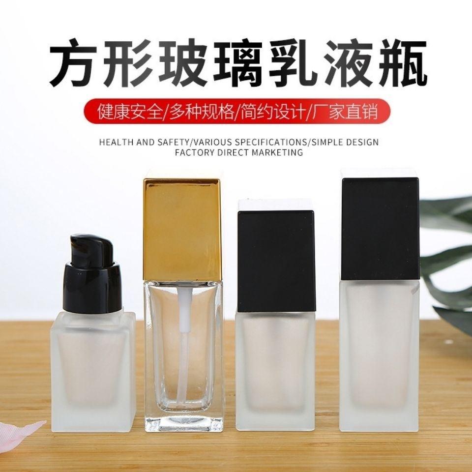 Productos para el cuidado de la piel al por mayor BB cream crema aislante Botella de vidrio con bomba a presión Esencia líquida base botella sub-botella cuadrada para loción