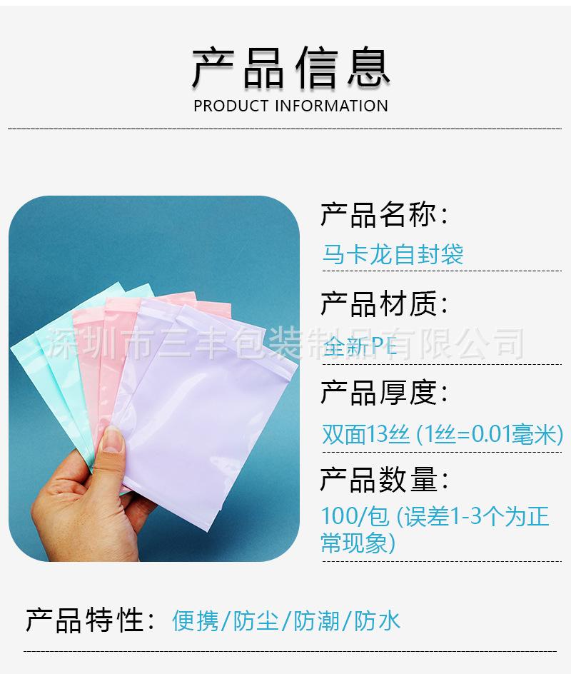Bolsa Autosellable Color Macaron PE Bolsillo de Almacenamiento Bolsa de Cadena Gruesa Bolsa para Empaque de Regalo de Joyería Translúcida