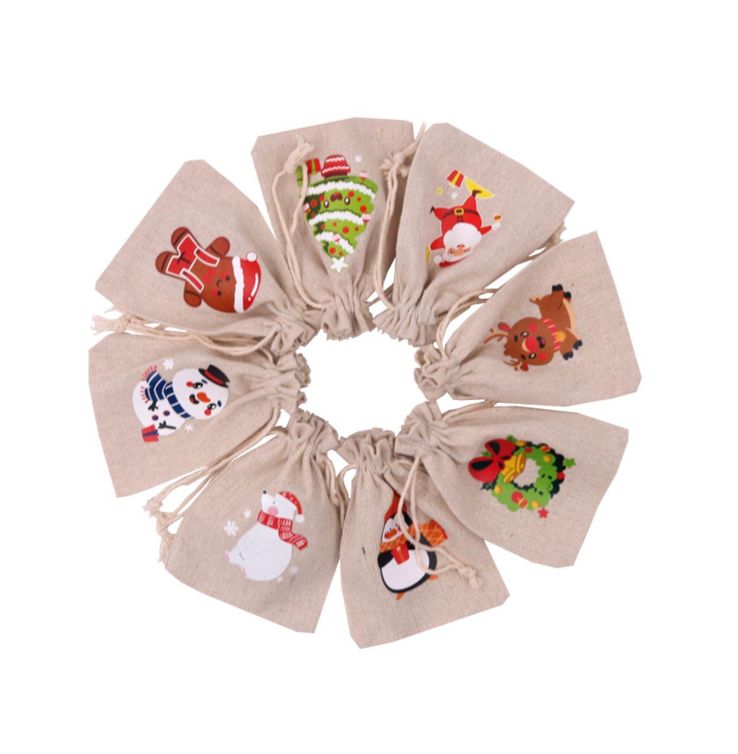 Suministro directo transfronterizo Bolsa de algodón navideña Embalaje para dulces de Papá Noel Bolsa con cordón para pequeños regalos