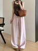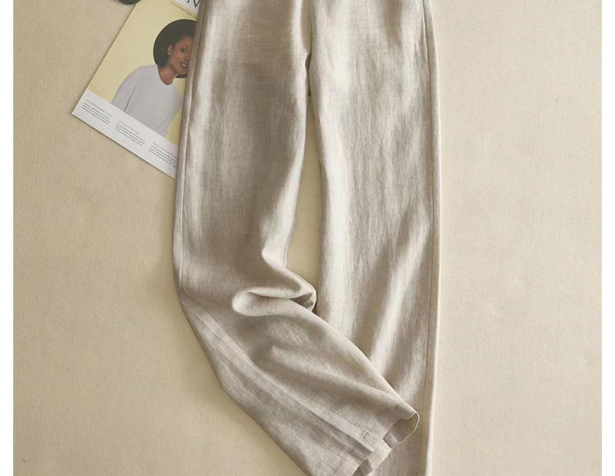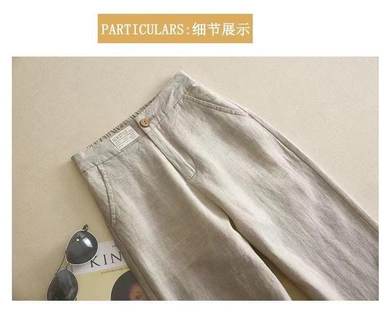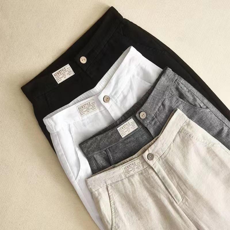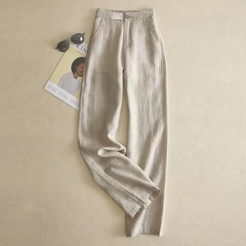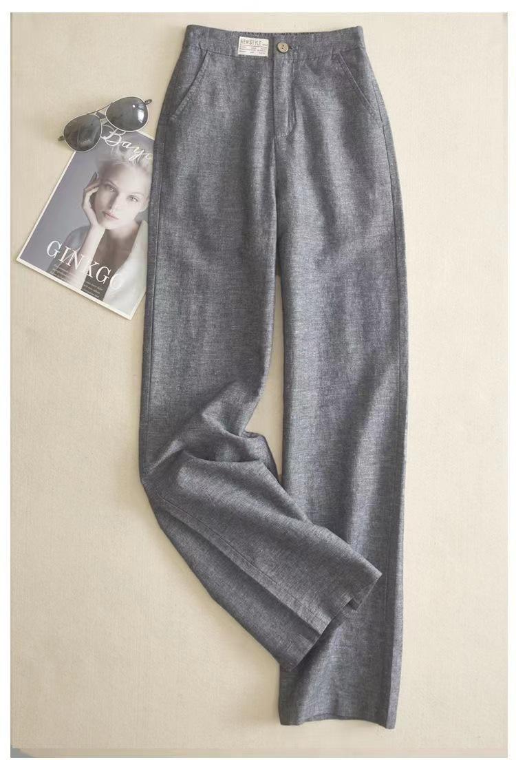 Pantalones de Lino de Pierna Ancha para Mujer Pantalones Largos Moda Sueltos Sencillos Algodón Lino Ropa de Mujer Drapeado Cintura Alta Pierna Recta Negro
