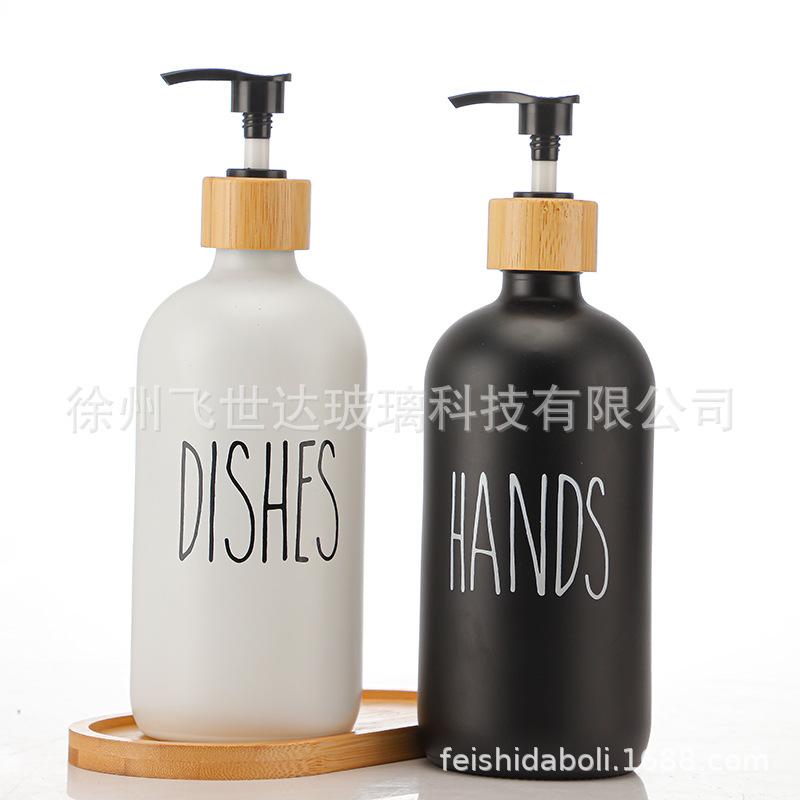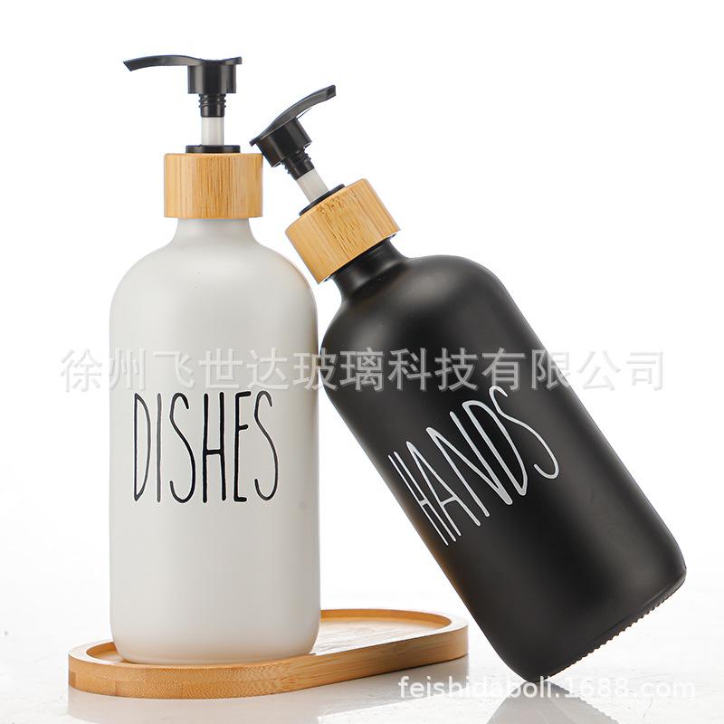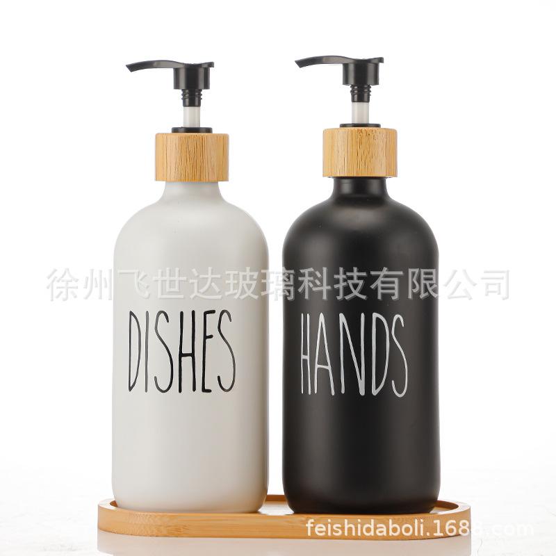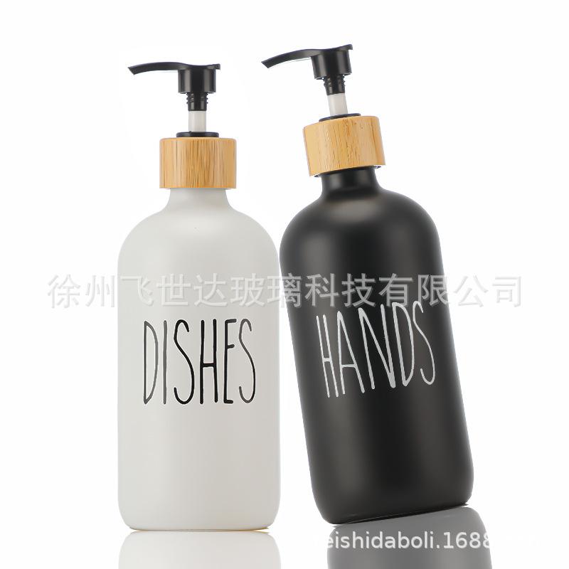 Botella de vidrio blanco y negro de 500 ml para desinfectante de manos transfronteriza de Amazon, juego de botellas de presión para loción de baño
