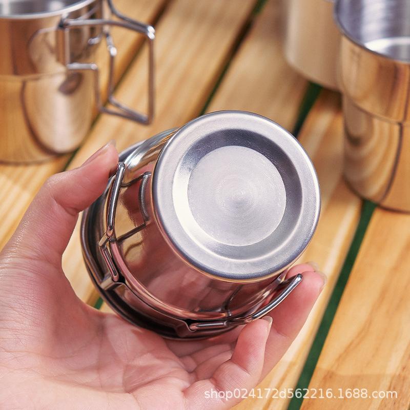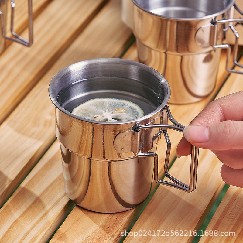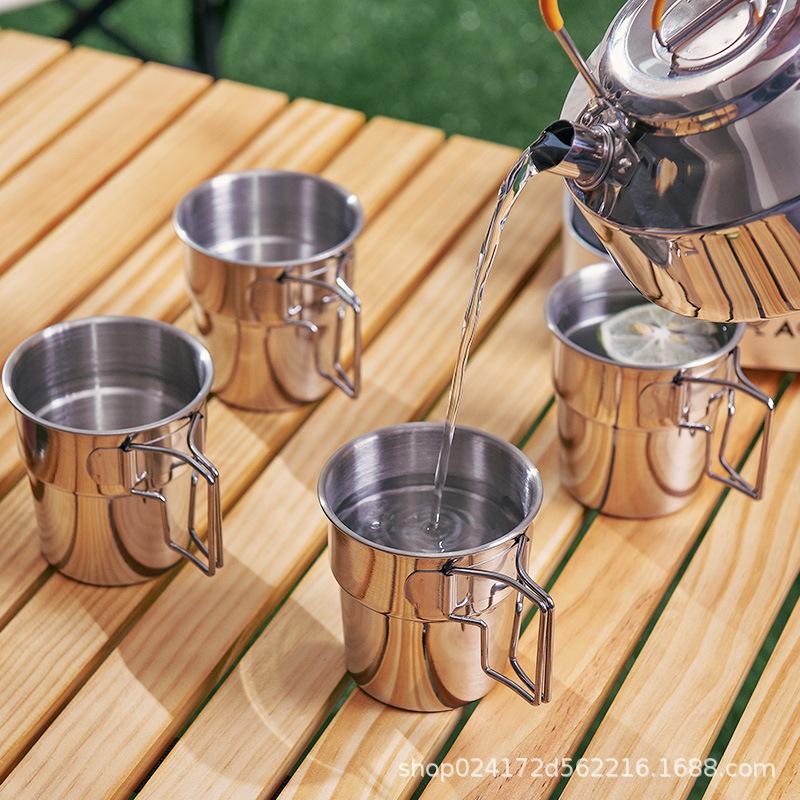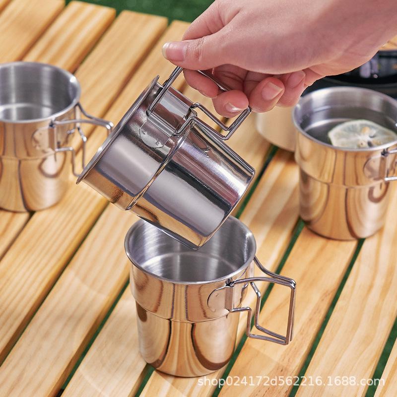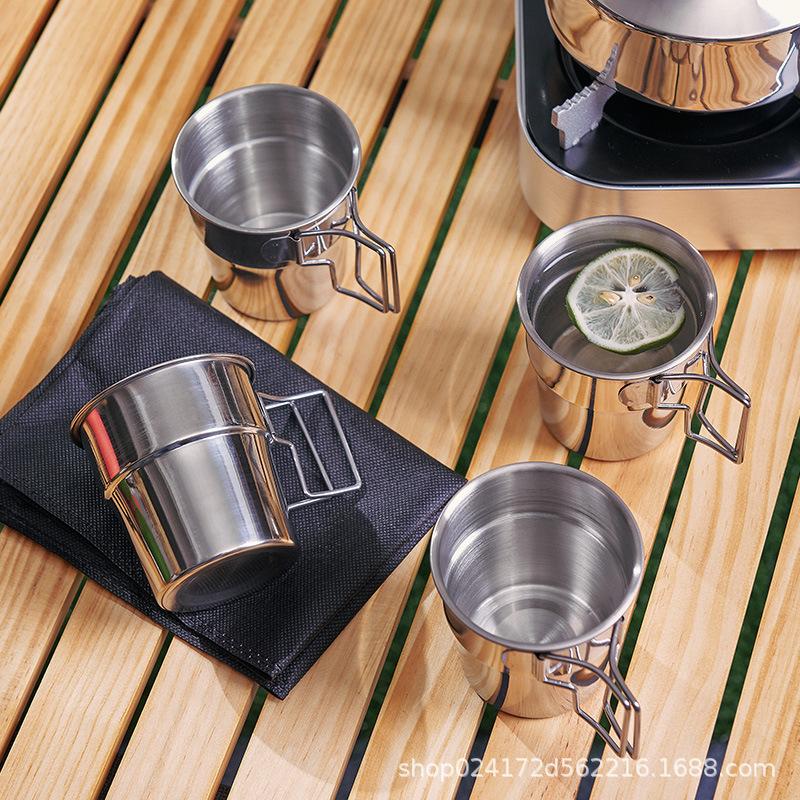 Vaso de Boca de Acero Inoxidable 304 para Exteriores Juego de 4 Piezas Vaso de Agua Camping Picnic Senderismo Taza Portátil Plegable para Almacenamiento
